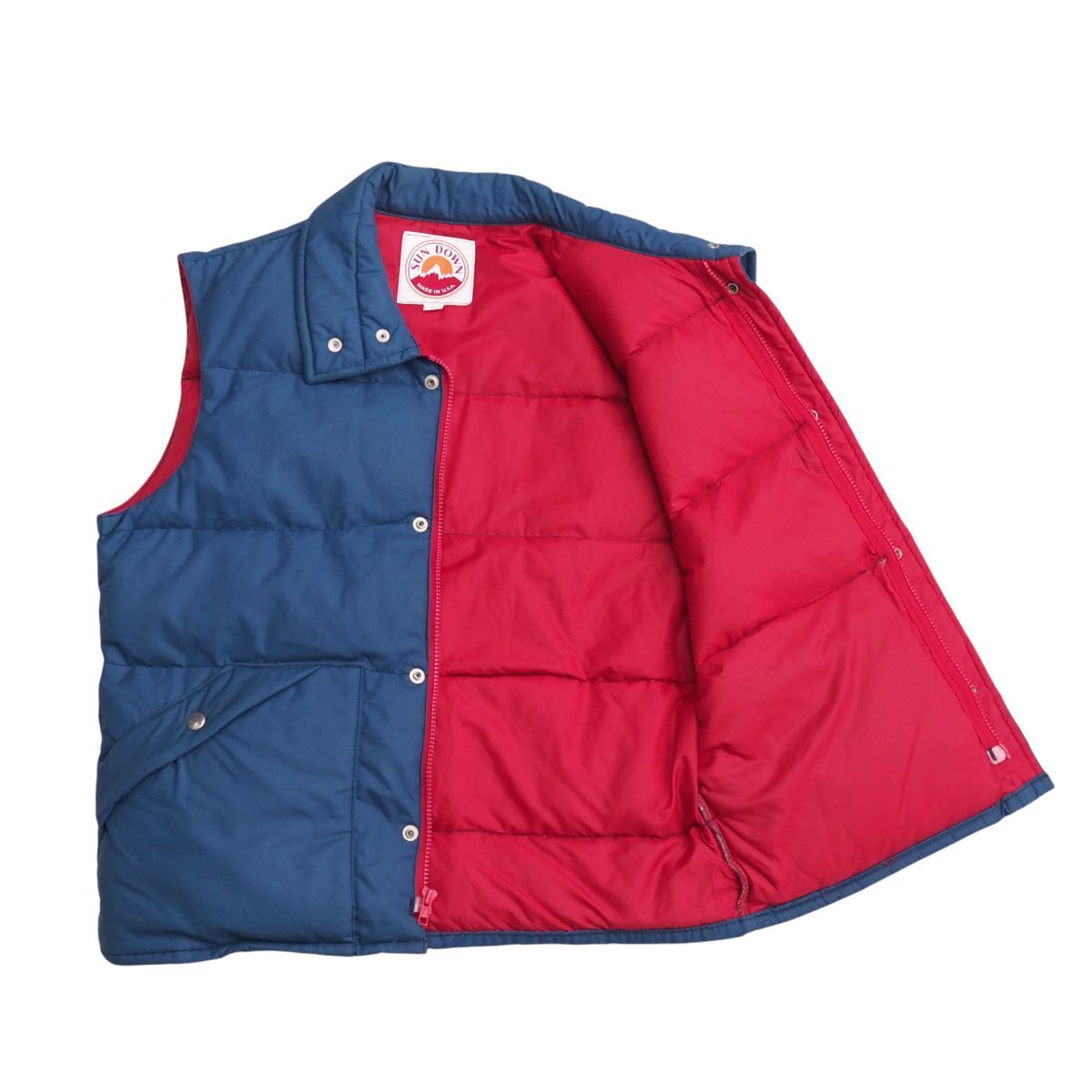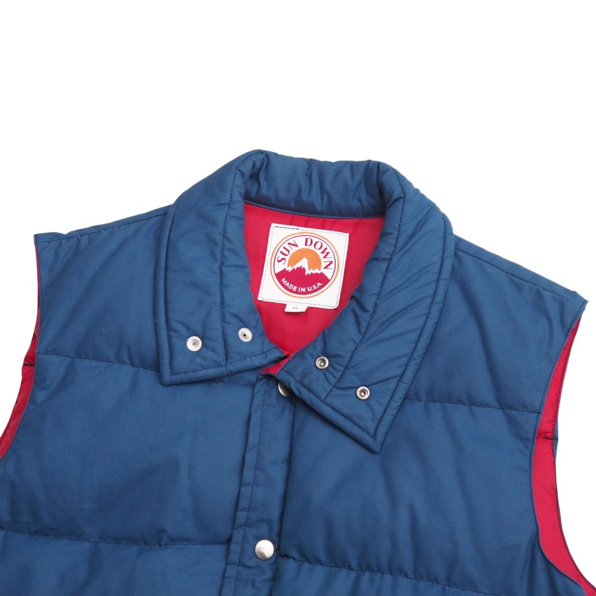 | TJ4225+USA製*70~80s*ヴィンテージ*SUN DOWN/サンダウン*メンズM*ダウンベスト*ジレ*ジップアップ/スナップボタン*ブルー系 | |||