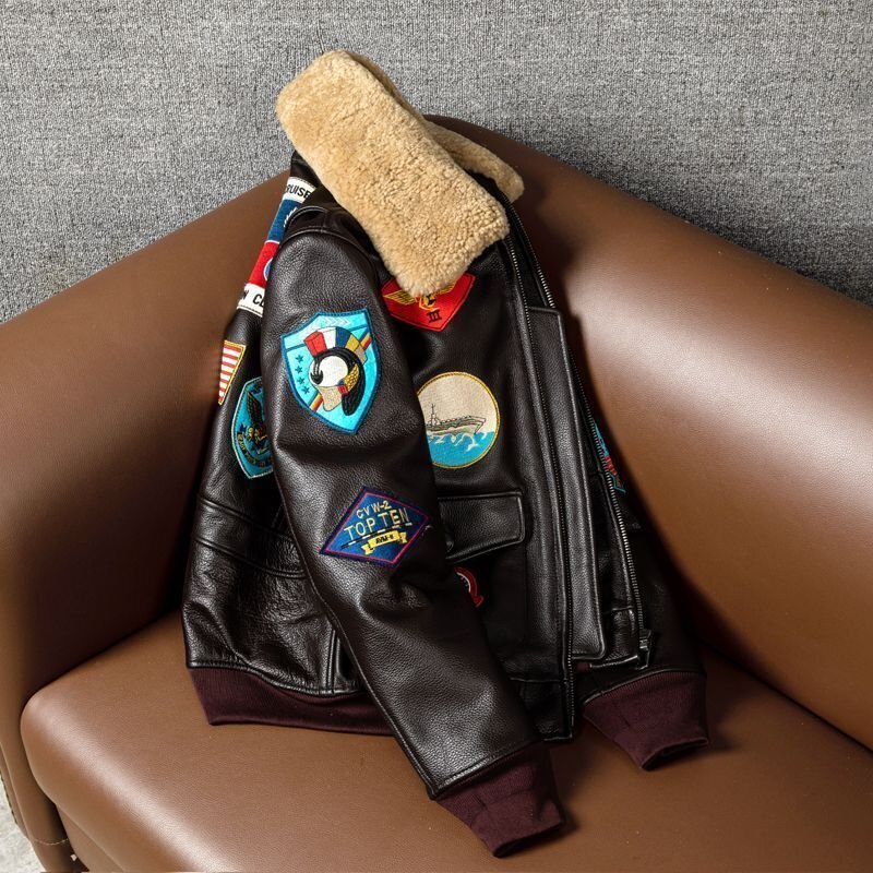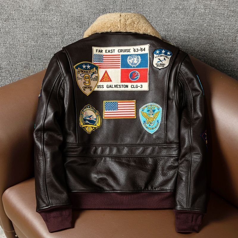 ●G-1 刺繍 フライトジャケット 牛革 カウハイド 本革 メンズファッション レザージャケット 革ジャン レザーコート 厚手