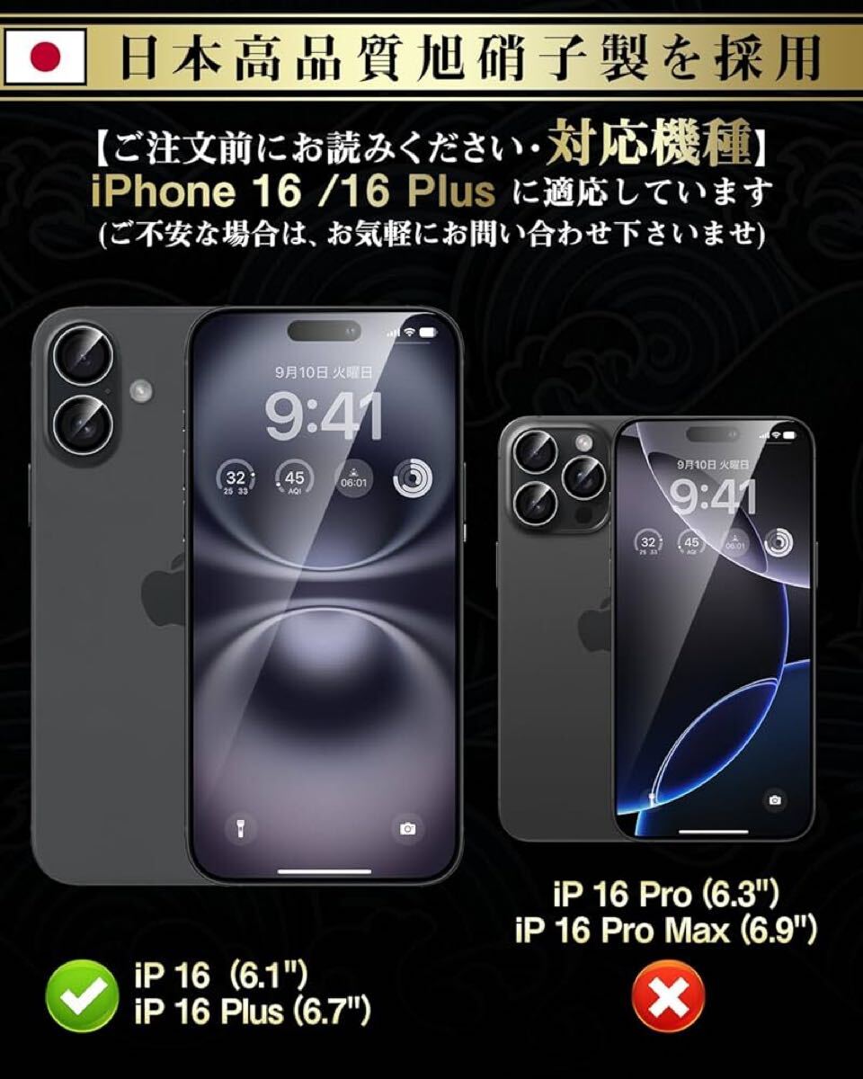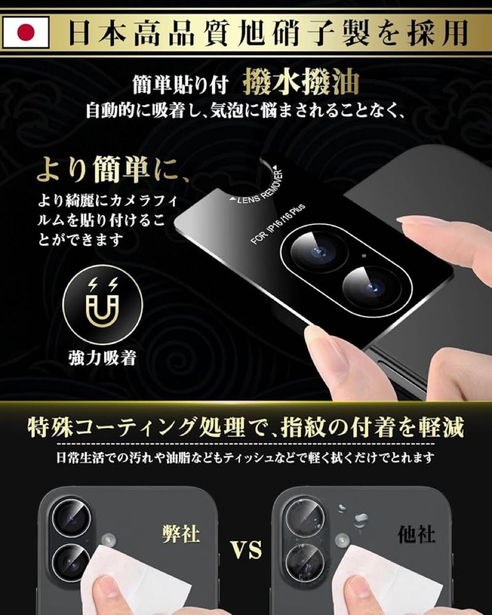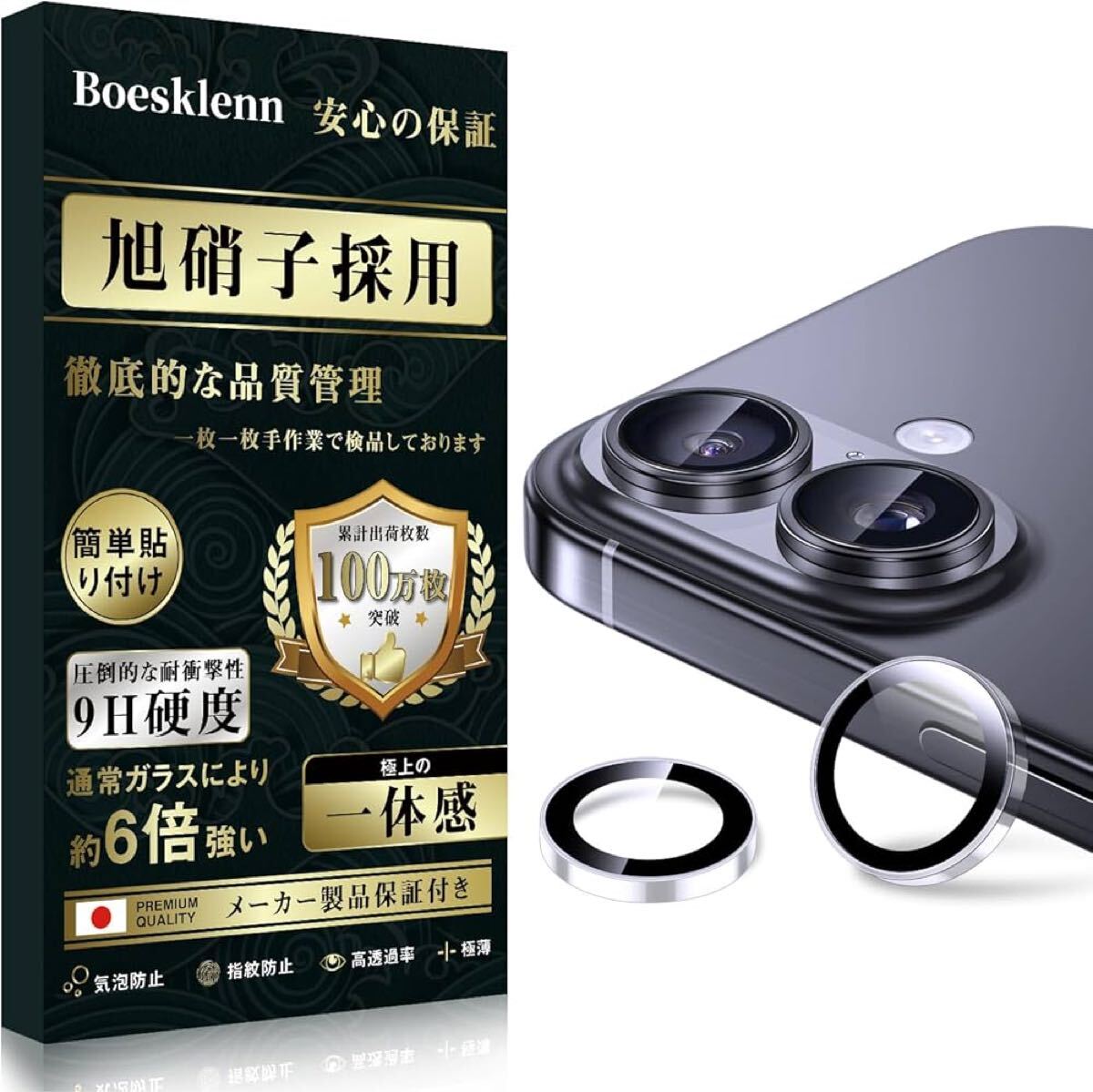 Boesklenn iPhone16 カメラ保護 フィルム【日本旭硝子素材製/露出オーバー防止/防塵/航空用アルミ合金/硬度9H/全面保護/高透過率】