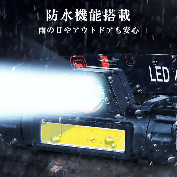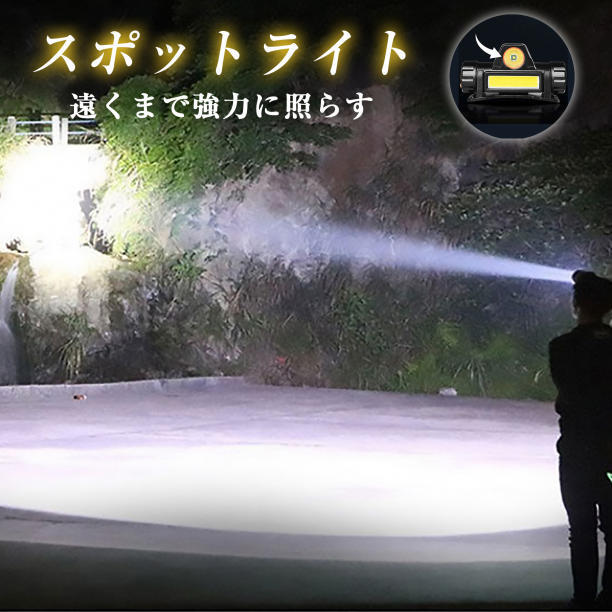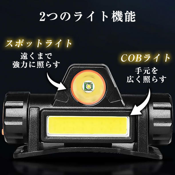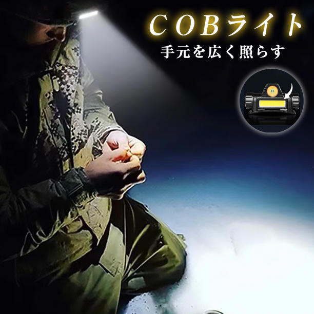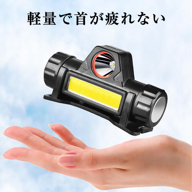 LED ヘッドライト COB 投光器 ランプ USB 充電式 懐中電灯 ランタン