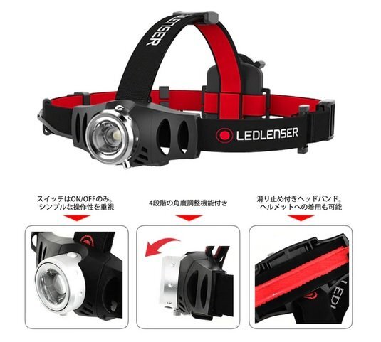 【商品内容】■レバー操作で簡単調光。明るさとランタイムのバランス型。ロングセラーH7の基本性能を受け継いだヘッドライト。200~5ルーメンの間で無段階に調光できるレバーを装備し、感覚的に明るさを調節可能。フォーカスレンズを搭載し、遠近両用で使用できます。スポット光は鋭い光軸を発し、ワイド光は均一で眩しくないサークルビームを照射。明るさとランタイムのバランスに優れた製品設計です。Ledlenserのヘッドライトと言えば、これ!という方も多い定番モデル●LED:1 x Power LED●光束:最大 200 lm - 最低 5 lm●照射距離:最大 120 m - 最低 20 m●点灯時間:最大 60 h - 最低 4 h●使用電池:3 x Micro (AAA) 1.5V●電池容量:5.63 Wh●防水性能:IPX4●充電:不可●ヘッド直径:28 mm●重量(電池込):133 g●付属品:ポーチ, 電池