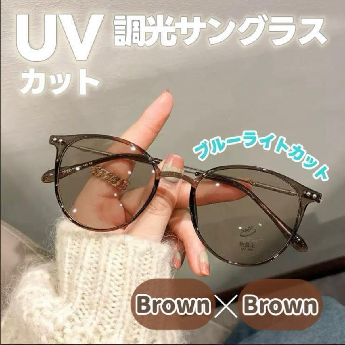 ・紫外線の量によってレンズの色が変わる調光サングラスです♪