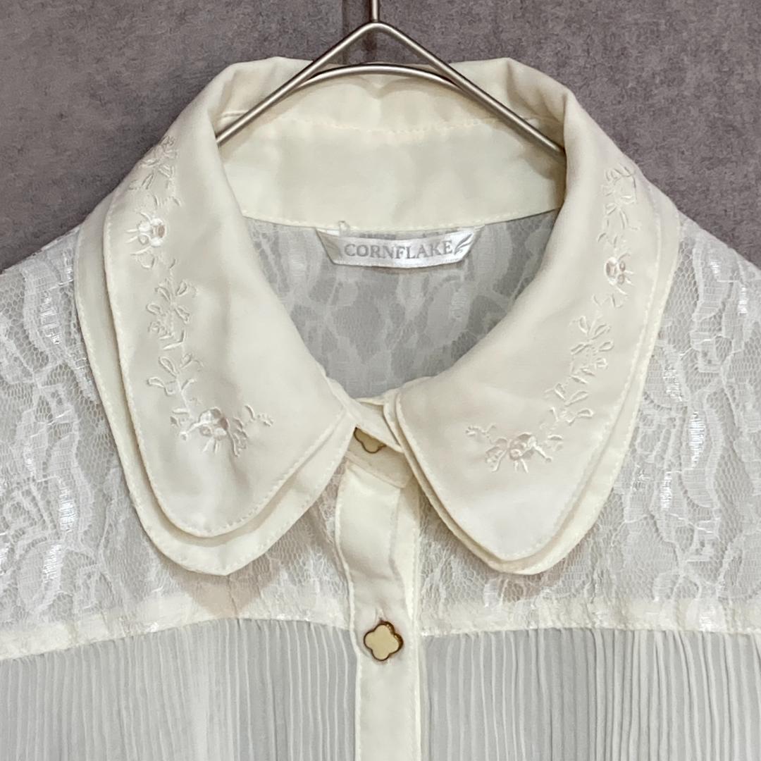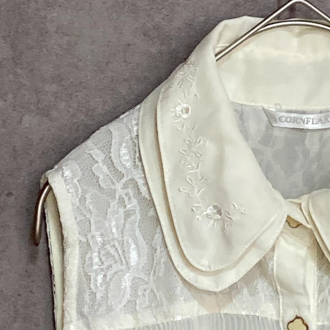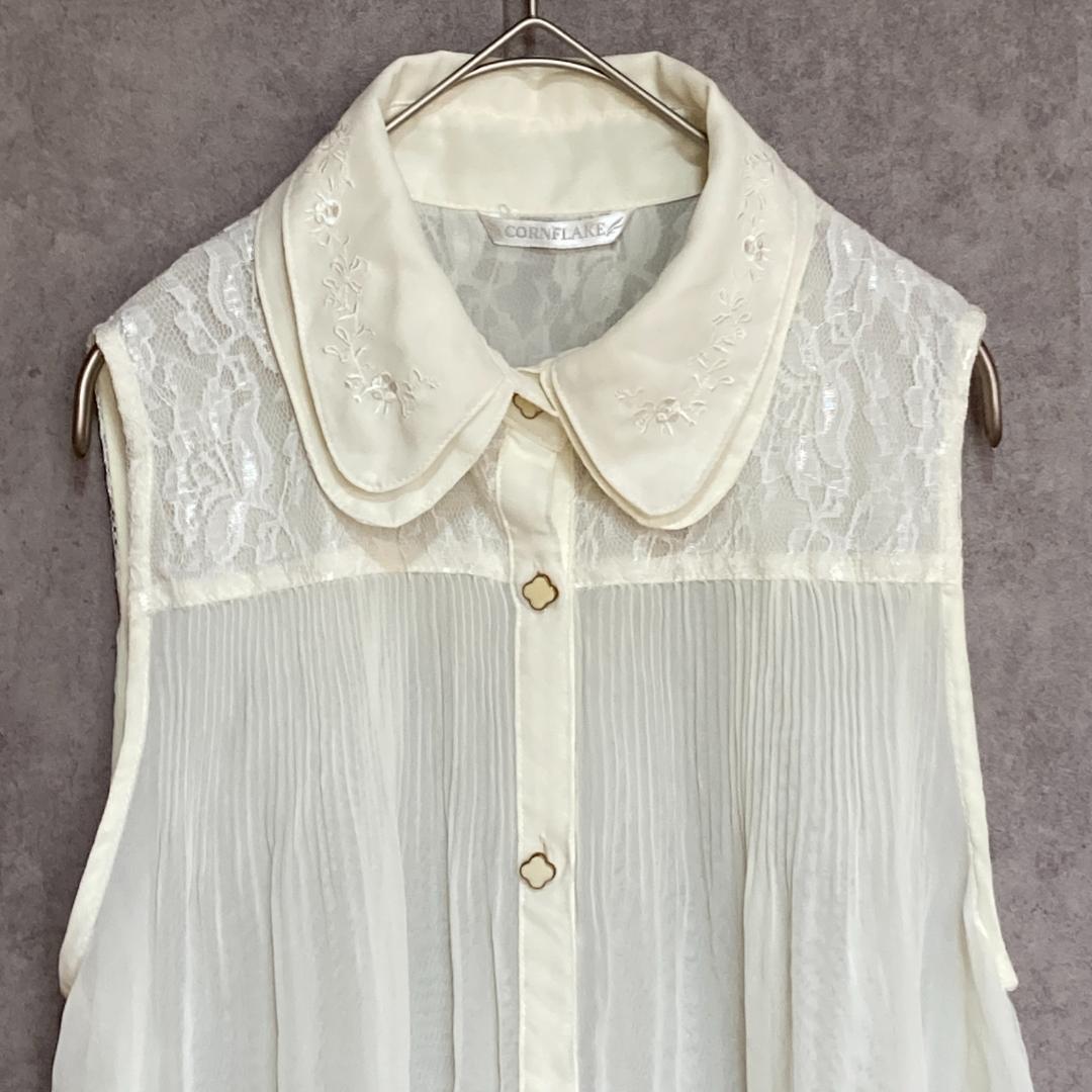 CORNFLAKE(ONE)ノースリーブレースブラウス*花ボタン*透け感*白