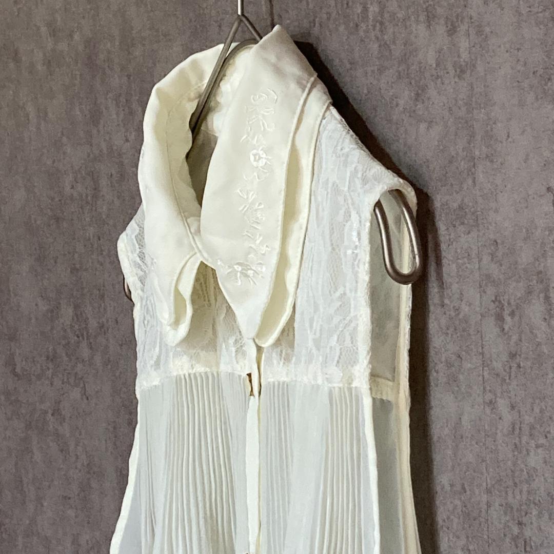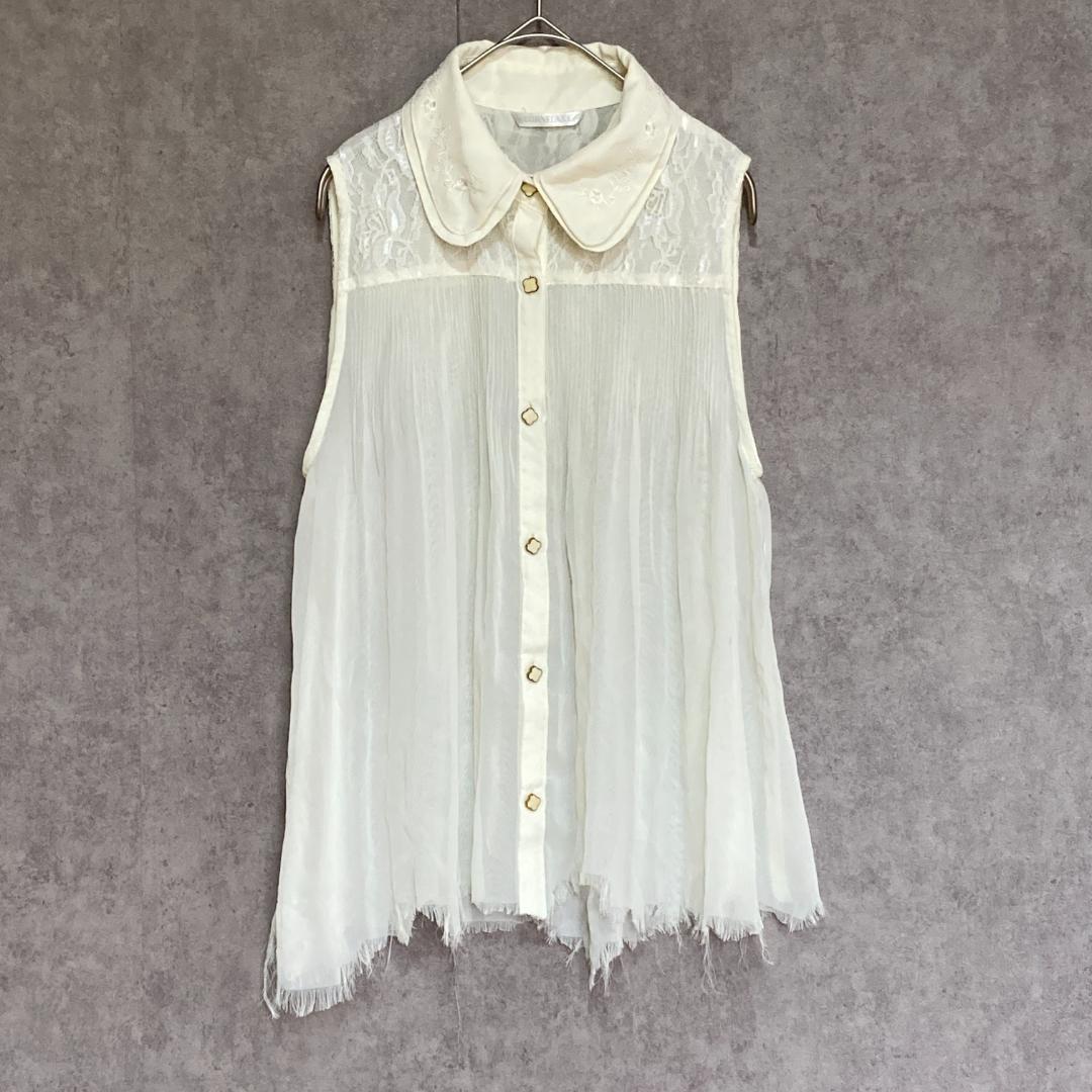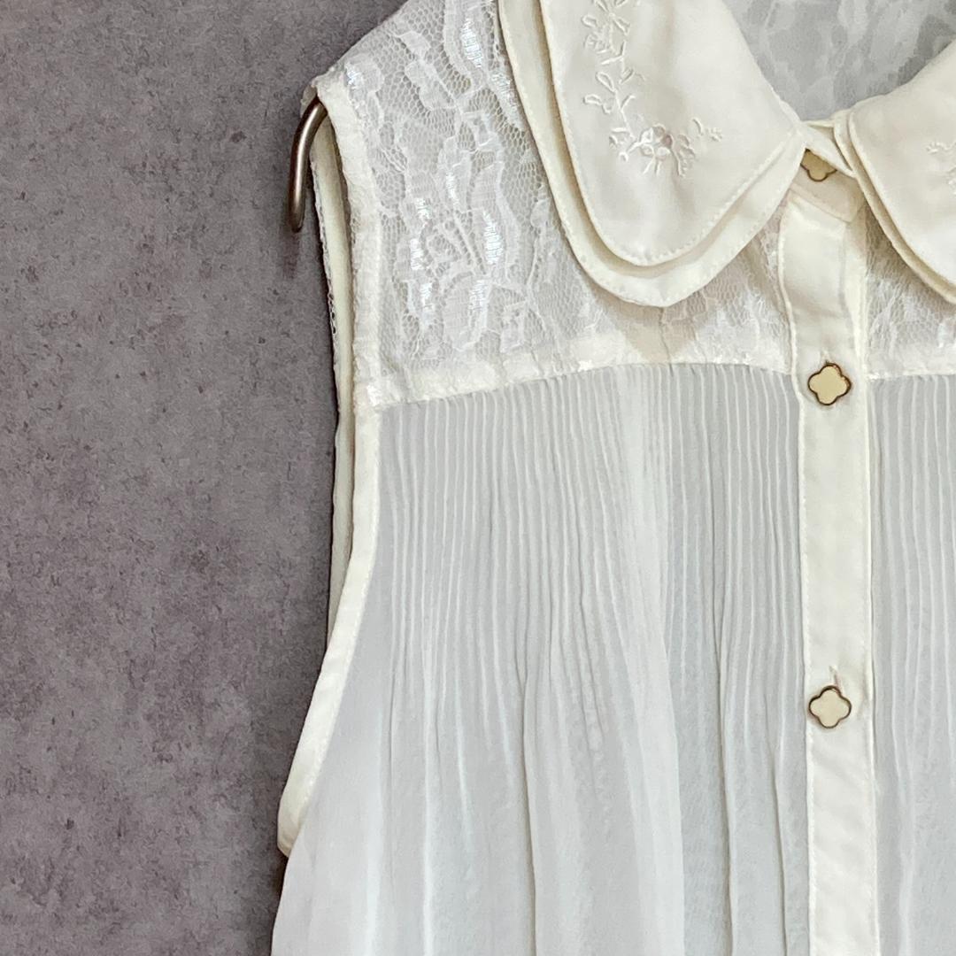 CORNFLAKE(ONE)ノースリーブレースブラウス*花ボタン*透け感*白
