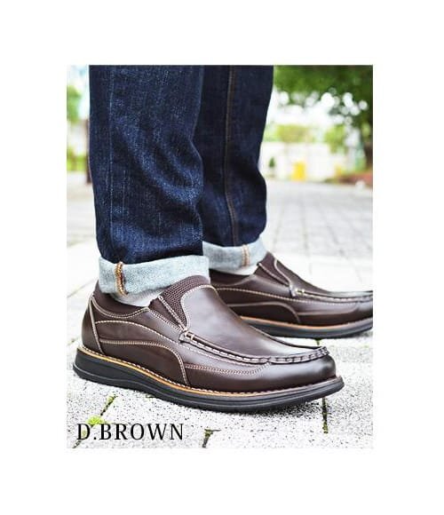 新品■27cm ウォーキングシューズ 軽量 メンズ スリッポン 防水 防滑 クッション きれいめカジュアル モカシン ステッチ 靴【エコ配送】