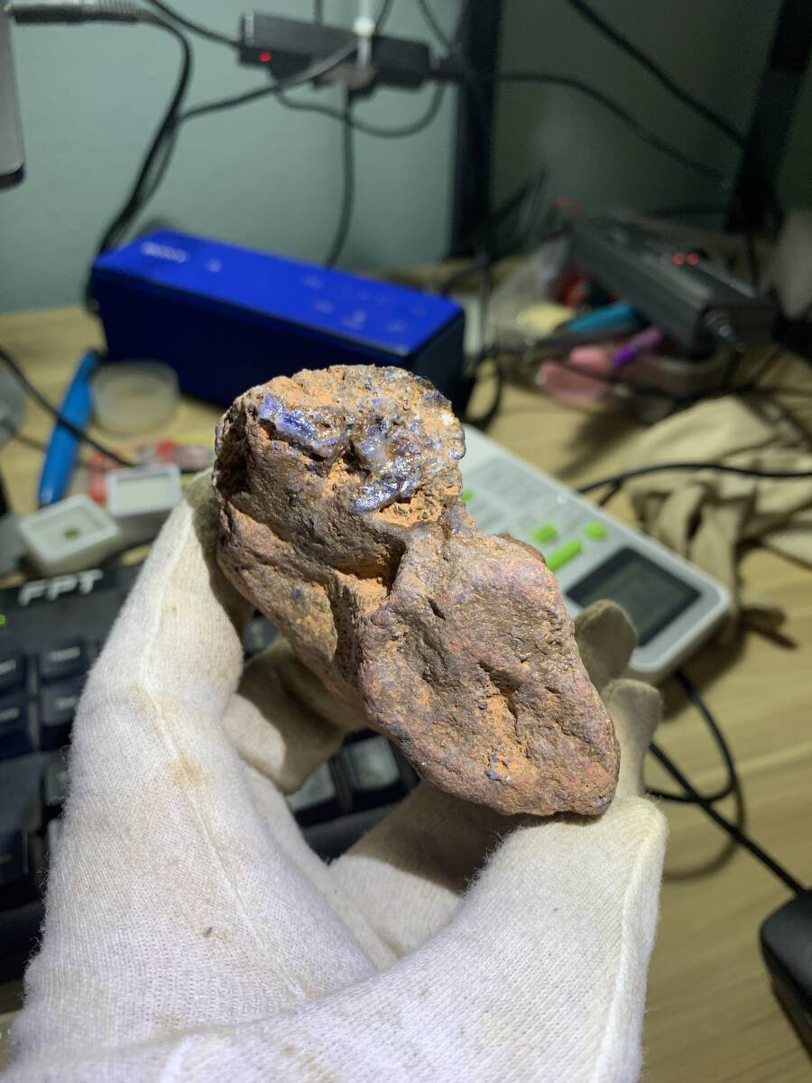 表に裂け傷があり、裏側に大きな凹みが見られます。