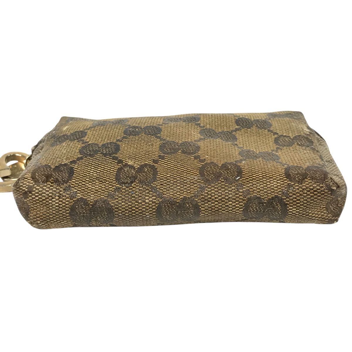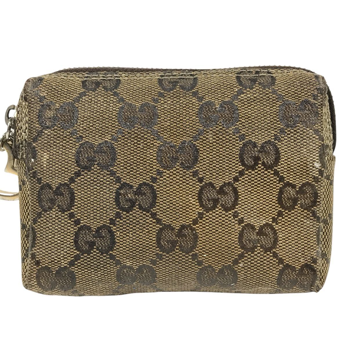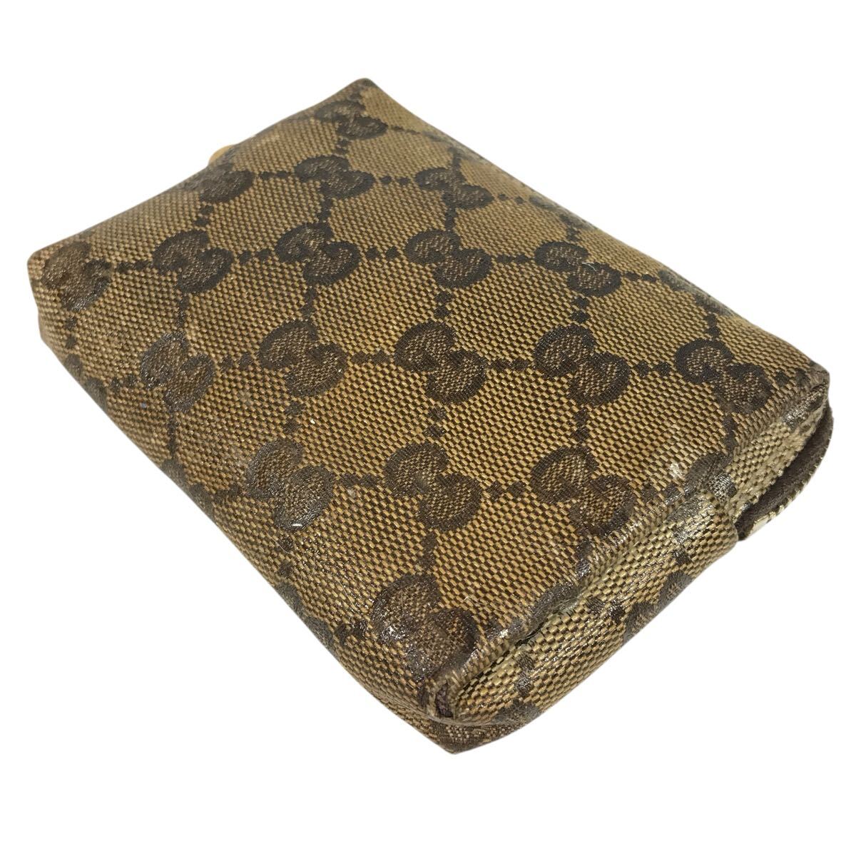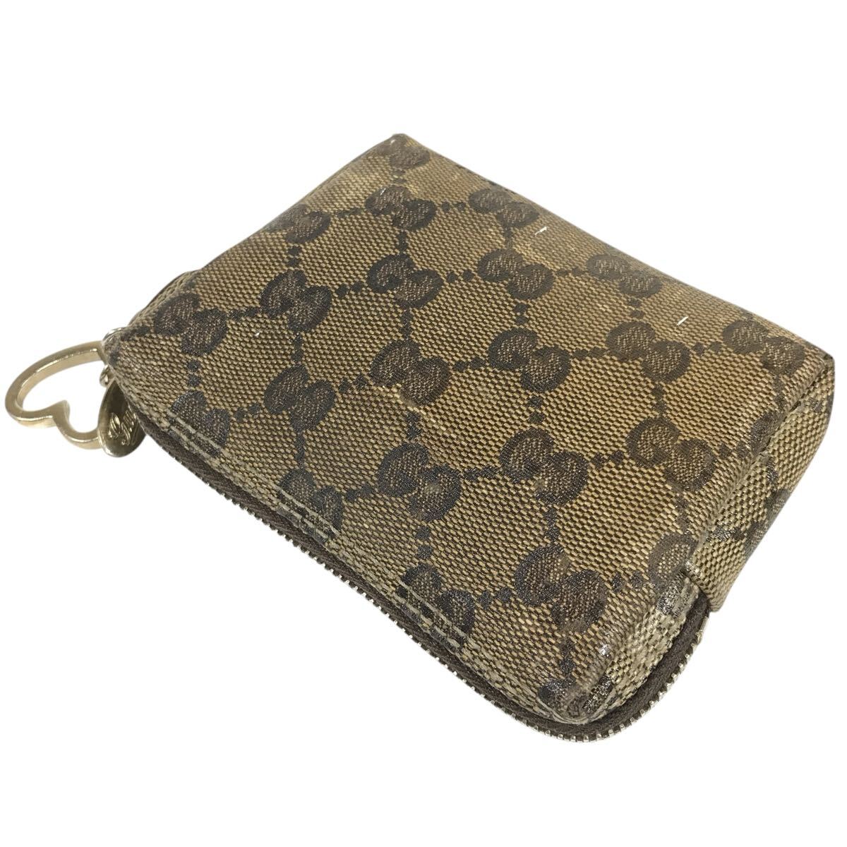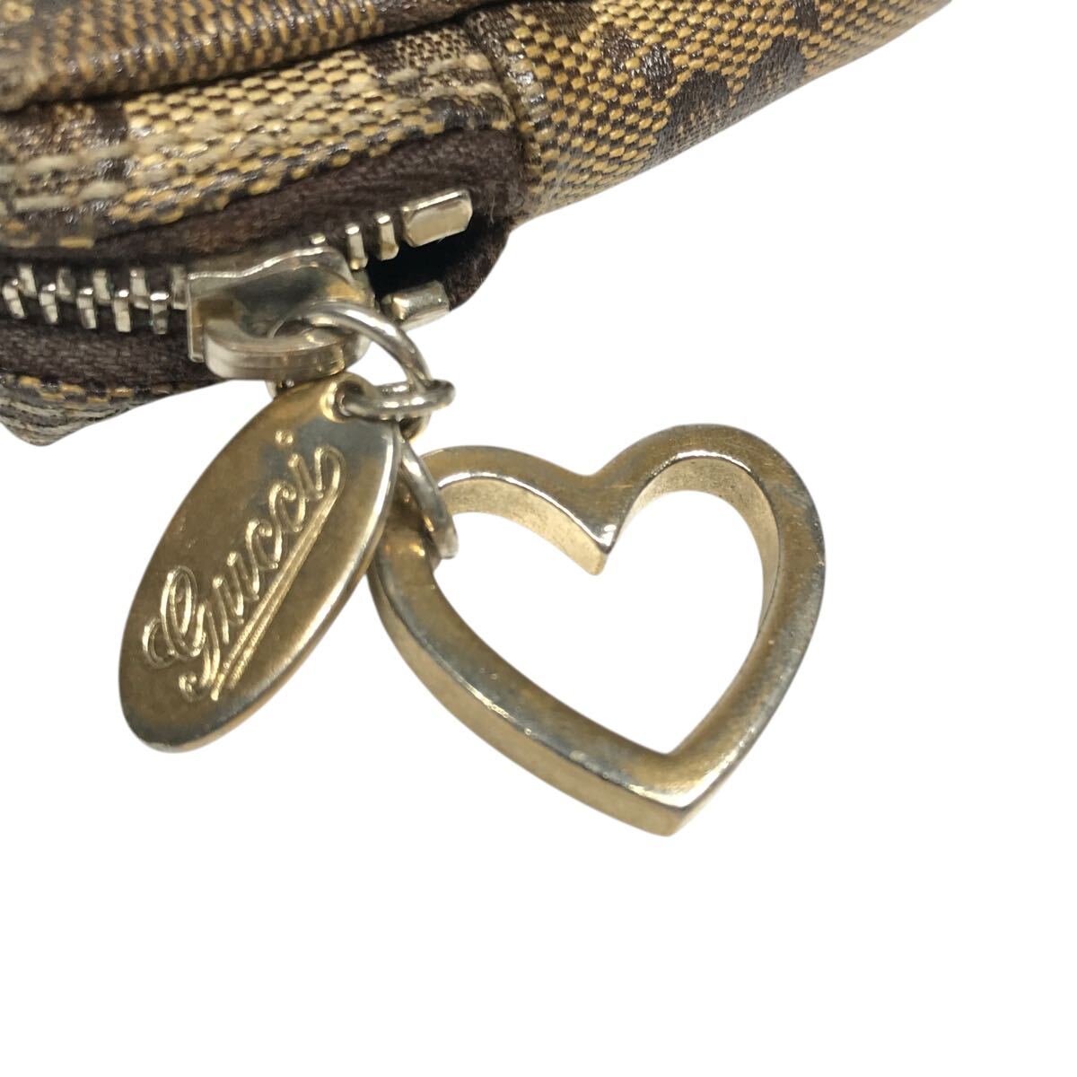 【グッチ】本物 GUCCI ポーチ GG柄 203355 ハート金具 小物入れ マルチケース コスメポーチ PVC 茶色系 女性用 レディース イタリア製
