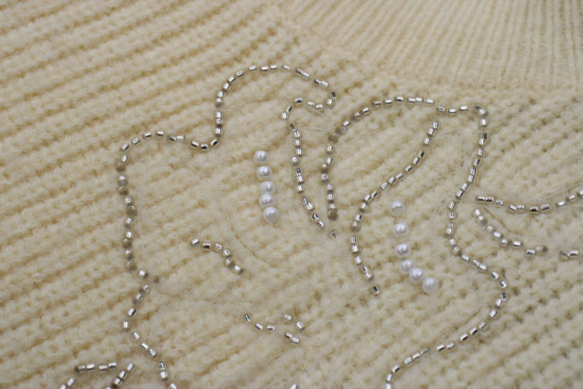 4787 新品 ビーズ飾り付きニットプルオーバー