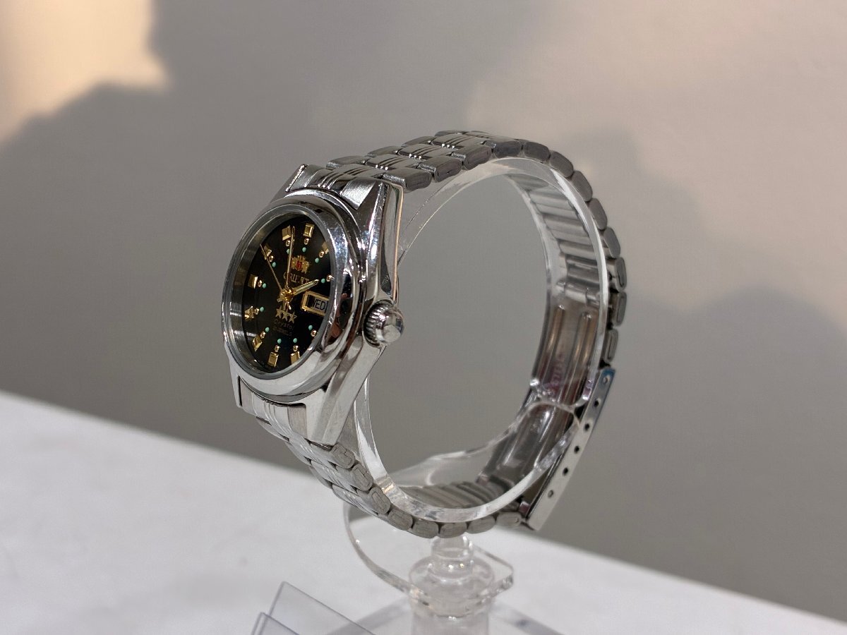 【ORIENT】 オリエント 【CRYSTAL】 アナログ3針デイデイト クォーツ式 N01X-01 文字盤ブラック×ゴールドカラー 腕時計 SY02-HCA