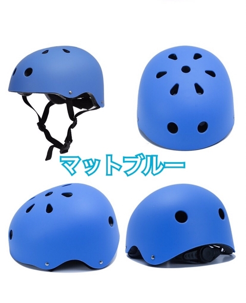自転車用 ヘルメット ブルー S マットカラー スケボー キックボード ストライダー ローラースケート スキー 子供 キッズ 大人