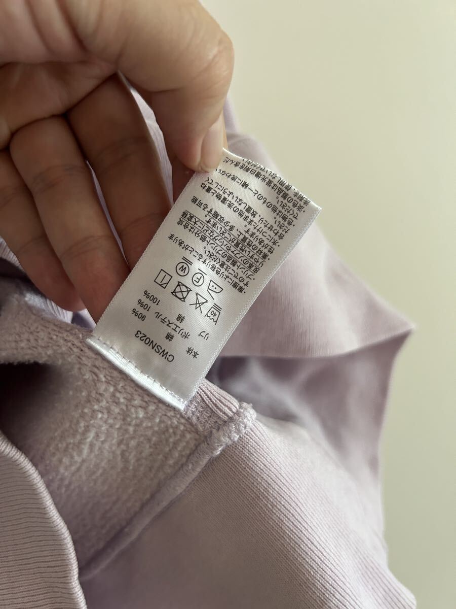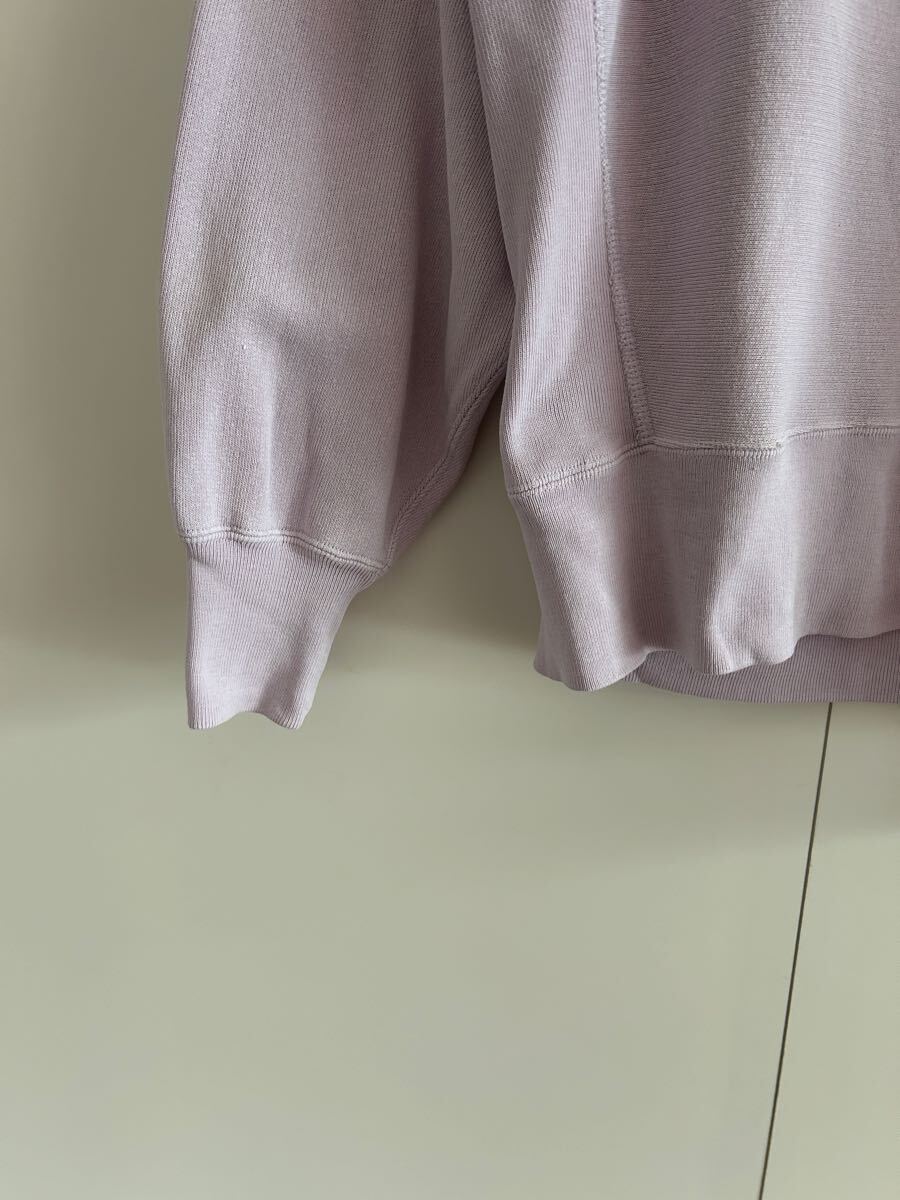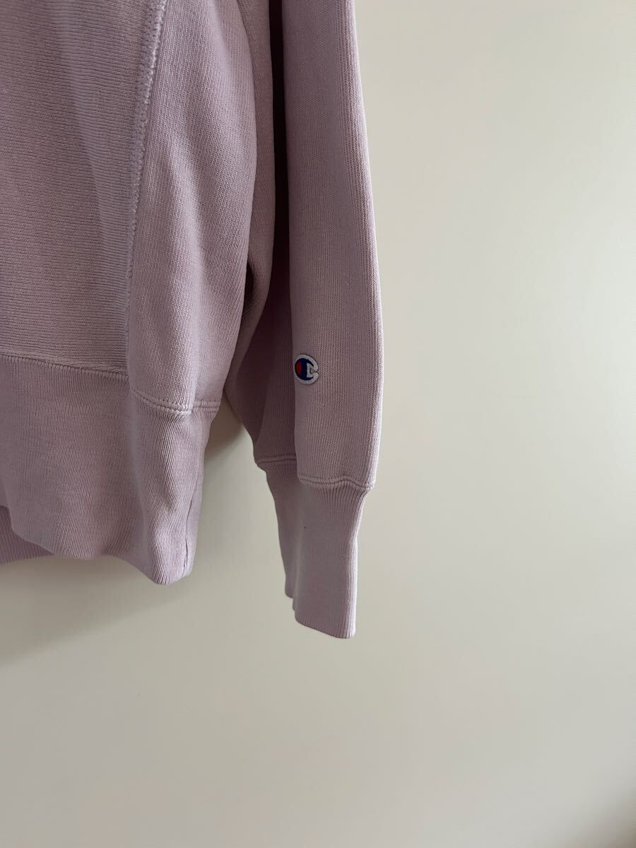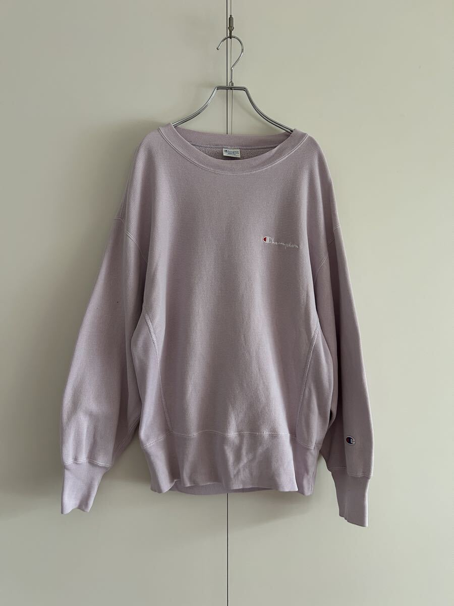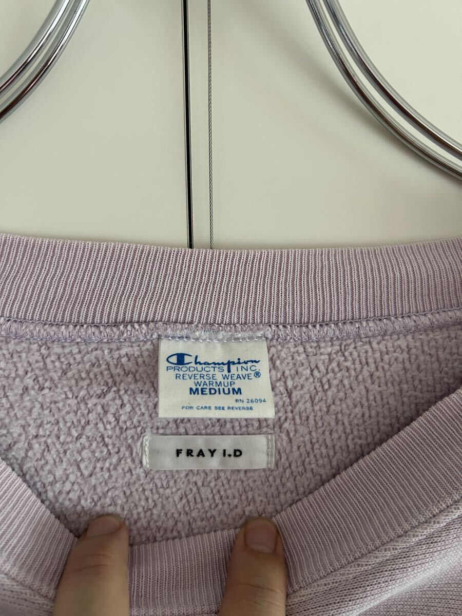 王道スウェットの代名詞、チャンピオン「リバースウィーブ」。こちらはFRAY I.D別注のモデルで、ライトパープルのボディにシンプルなロゴ刺繍が映える一枚です。女性人気も高く、都会的な雰囲気で古着スタイルをアップデートしてくれます。