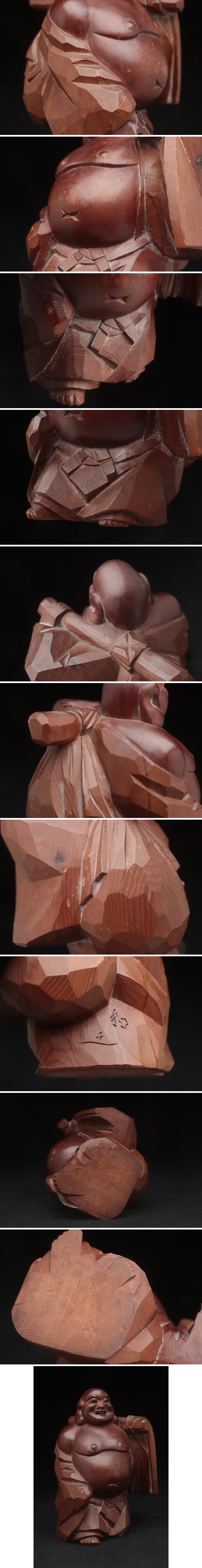 ◆ 【和之 作】飛騨一位一刀彫 木彫「布袋像」高11.7cm・木彫布袋和尚像・木雕釈契此像 七福神 置物 床置 ◆