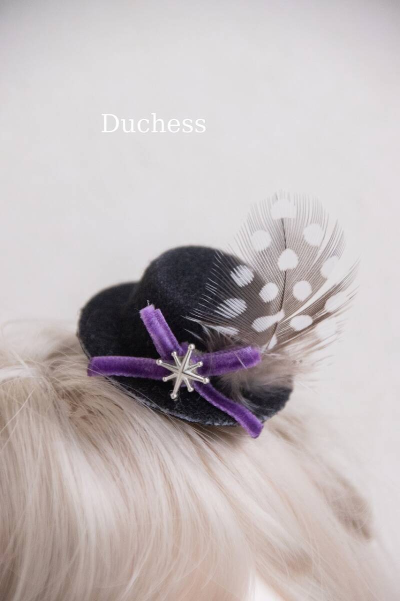 ベルベットリボンやフェザーを飾ったミニハットです。