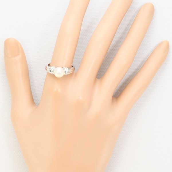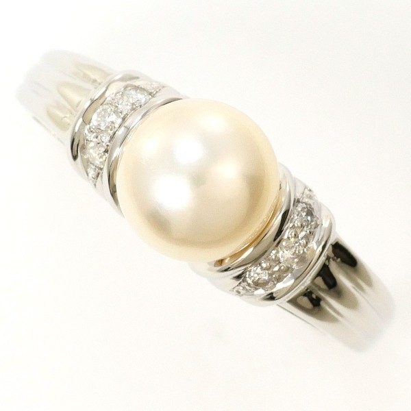 PT900 リング 指輪 15号 パール(真珠) 約7mm ダイヤ 0.06 総重量約5.3g 中古 美品 送料無料 | |