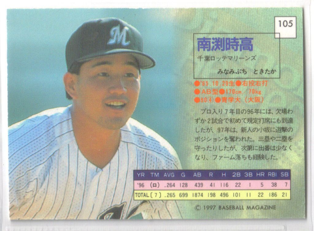 南渕時高 千葉ロッテマリーンズ 97BBM DH ダイヤモンドヒーローズ No.105