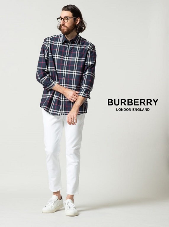 13万新品◆M◆BURBERRYバーバリー◆タータンチェックコットン長袖シャツ「SIMSON」紺ネイビー