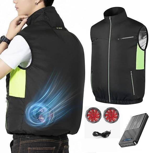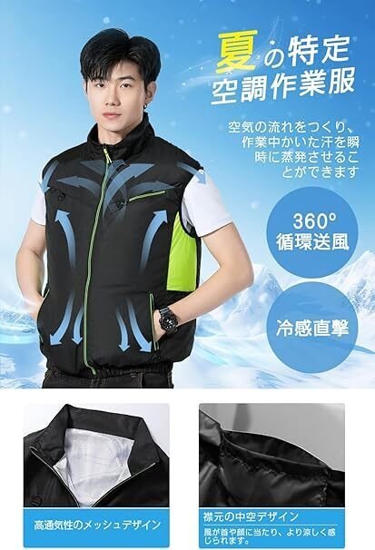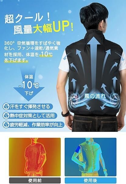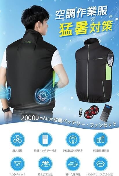 空調作業服 バッテリーファンセット ファン付きベスト 作業用 ジャケット 空調ウェア 20000mAh大容量バッテリー付き XLサイズ shw215.3