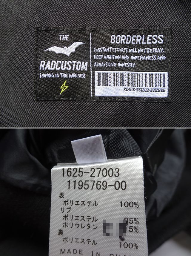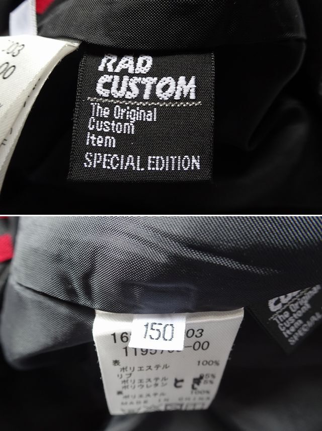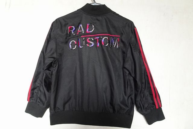 RAD CUSTOM/ジュニア/ブルゾン/ジャンパー/アウター/前ジップアップ/袖ラインテープ/バックししゅう/黒/ブラック/150サイズ(9/24R7)