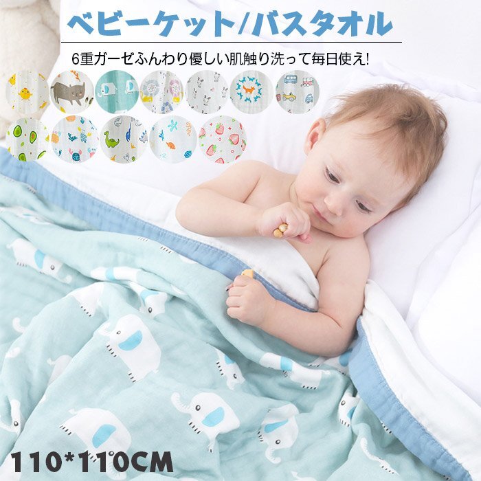 ベビーバスタオル お昼寝 ガーゼケット ガーゼ バスタオル 綿100% 6重ガーゼ 高密度 無添加ガーゼ 6重ガーゼ 110*110cm☆20色選択/1点