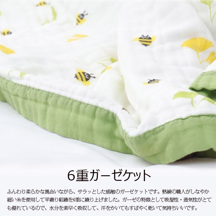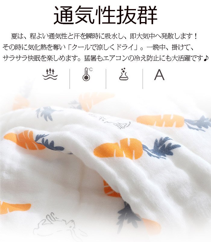 【6重ガーゼのベビーバスタオル】ガーゼ6枚を重ねて通気性、速乾性が優れているバスタオルを作り上げる。夏はサラサラ、冬はぬくぬく一年中お使いできる。