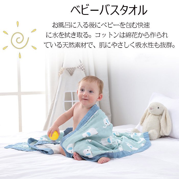 【色々使えるガーゼタオル】バスタオルとしてはもちろん、ガーゼケット、ベビーブランケット、トドラーケット、沐浴ガーゼ、おくるみ、突然のミルクの吐き戻し対策に、プレイマット、ベッドシーツ、大判のバスタオルとしても大活躍なベビー用品。