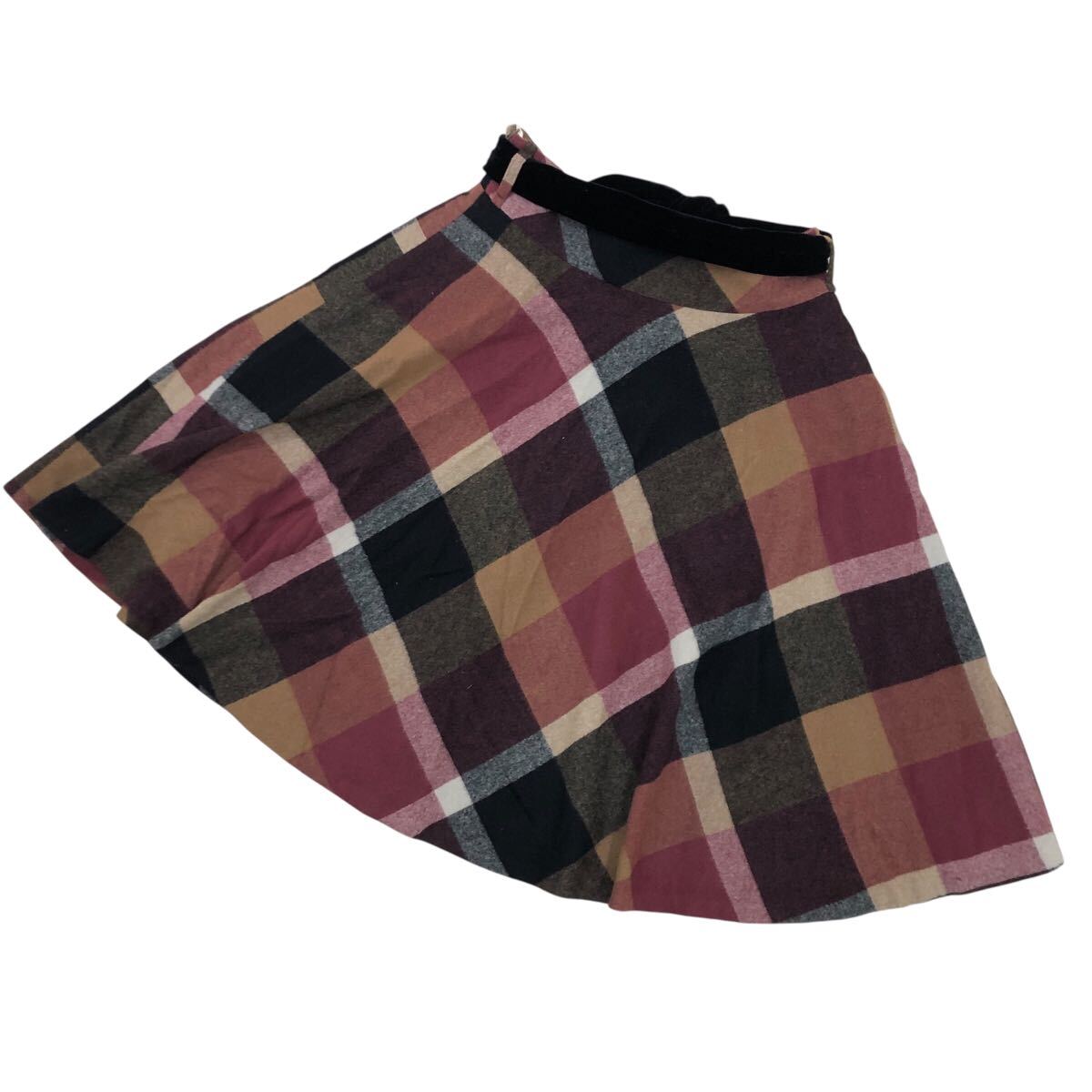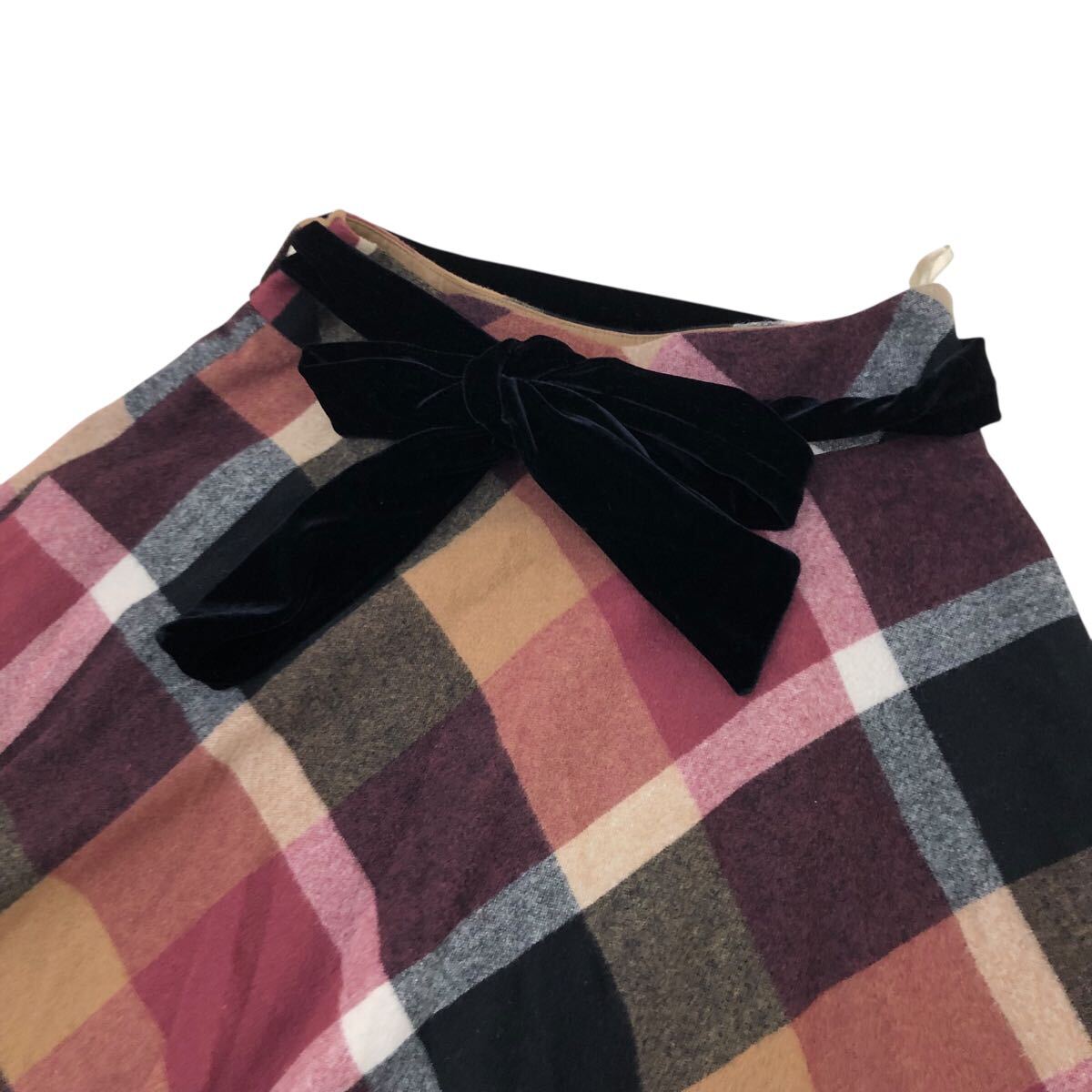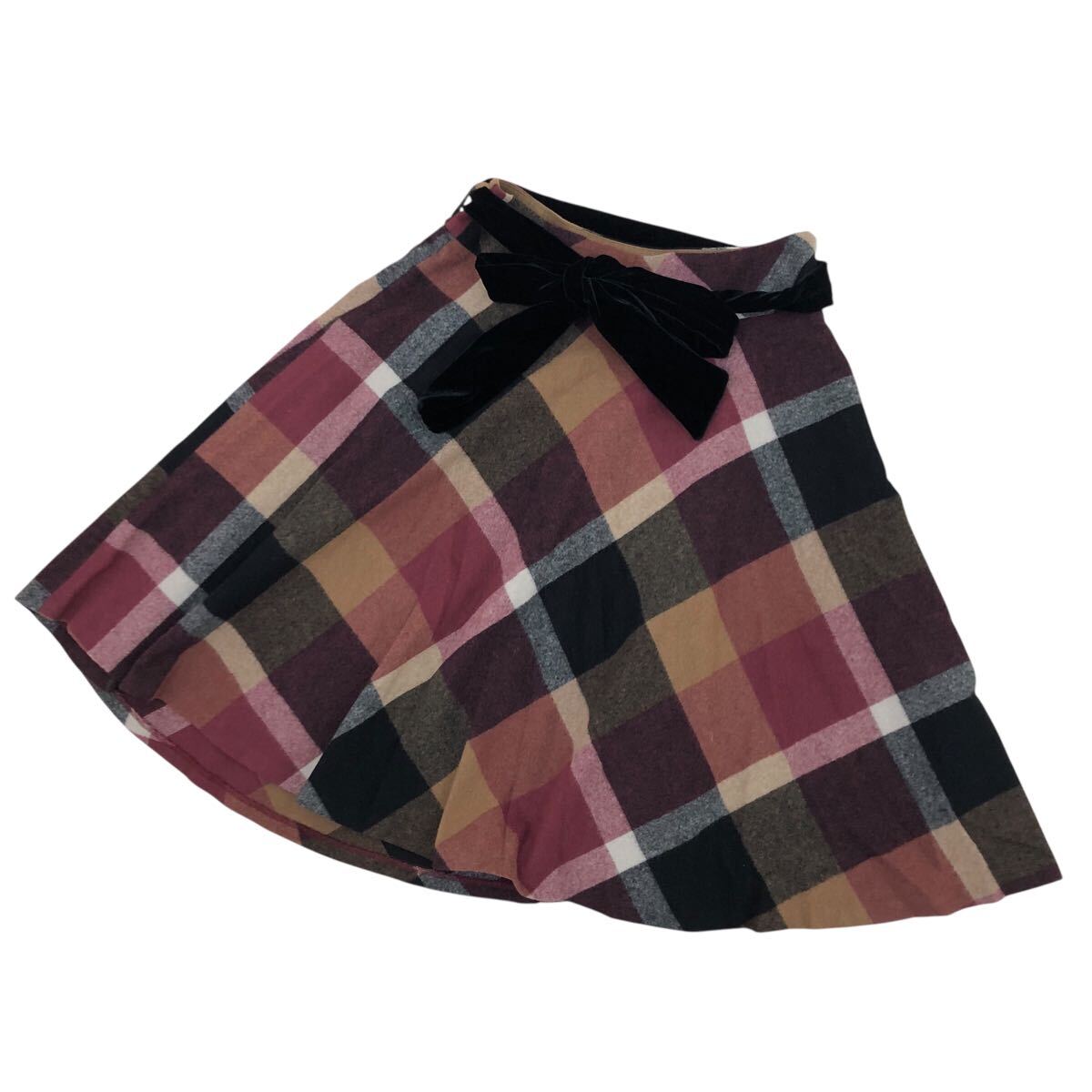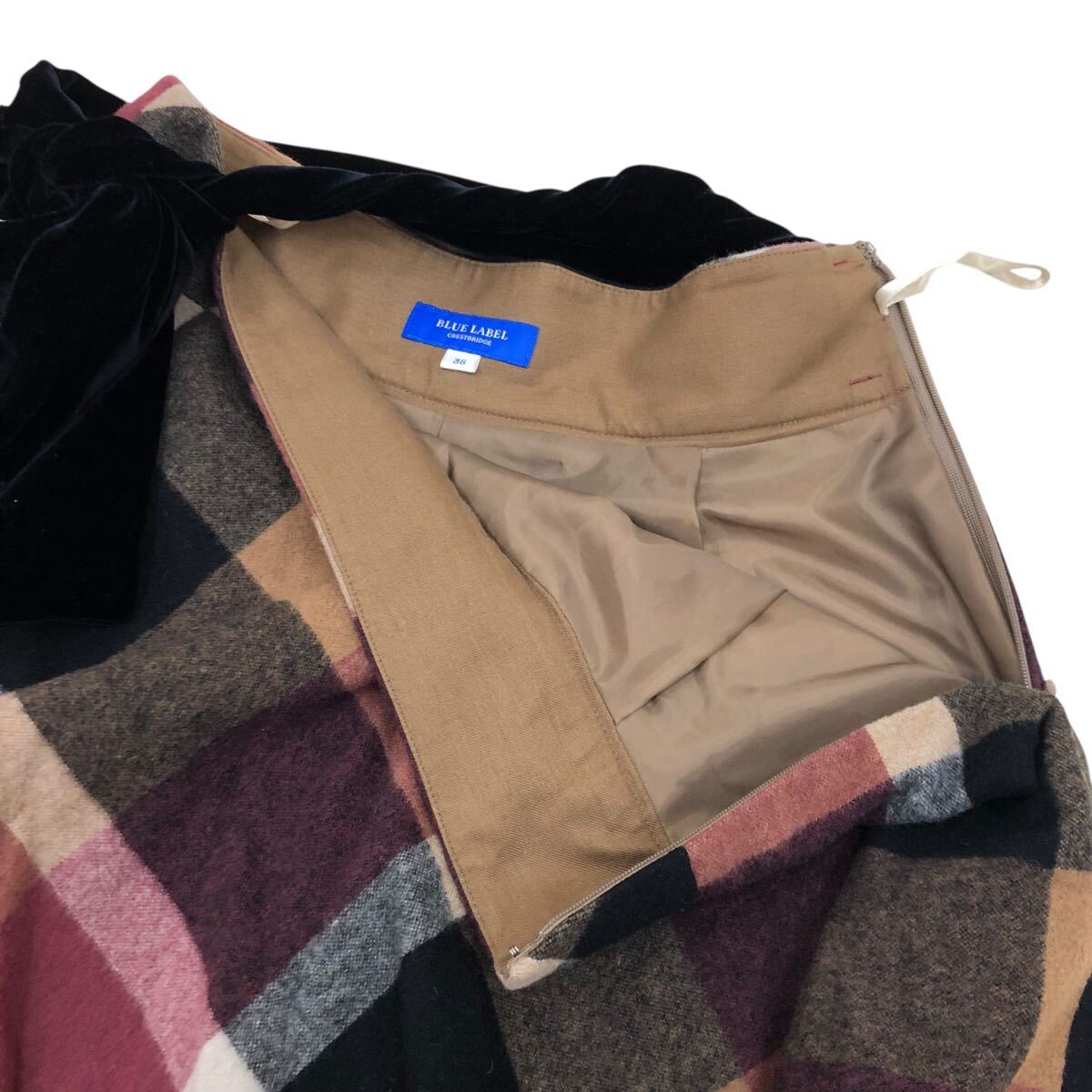 9NK003-77 BLUE LABEL CRESTBRIDGE ブルーレーベル クレストブリッジ ミニ スカート フレア ボトムス チェック 赤 黒 系 レディース 女性用 38