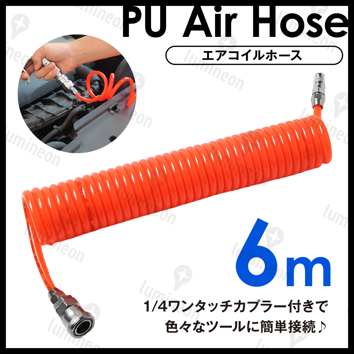 エア コイル ホース エアー ダスター チューブ 6m ツール 延長 カプラ カプラー コンプレッサー 工具 DIY 塗装 空気 入れ コネクタ g230b