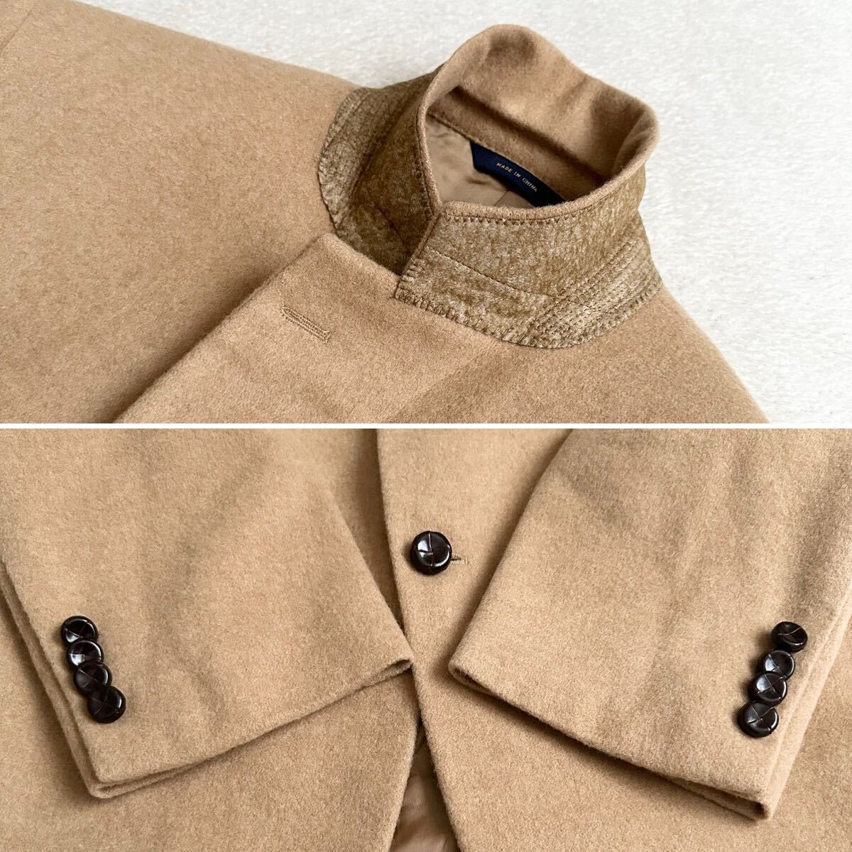 生地にはイタリアの最高級生地メーカー「ロロピアーナ(Loro Piana)」のキャメルヘア100%を採用しており、柔らかく上品な風合いと保温性を兼ね備えています。