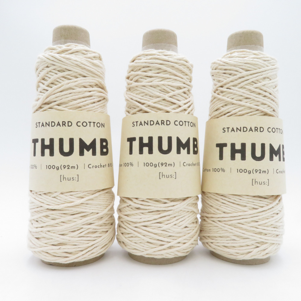 | 毛糸 hus: THUMB サム STANDARD COTTON 3玉セット きなり 極太 100g 約92m 綿100% 雑貨向き 未使用品 |