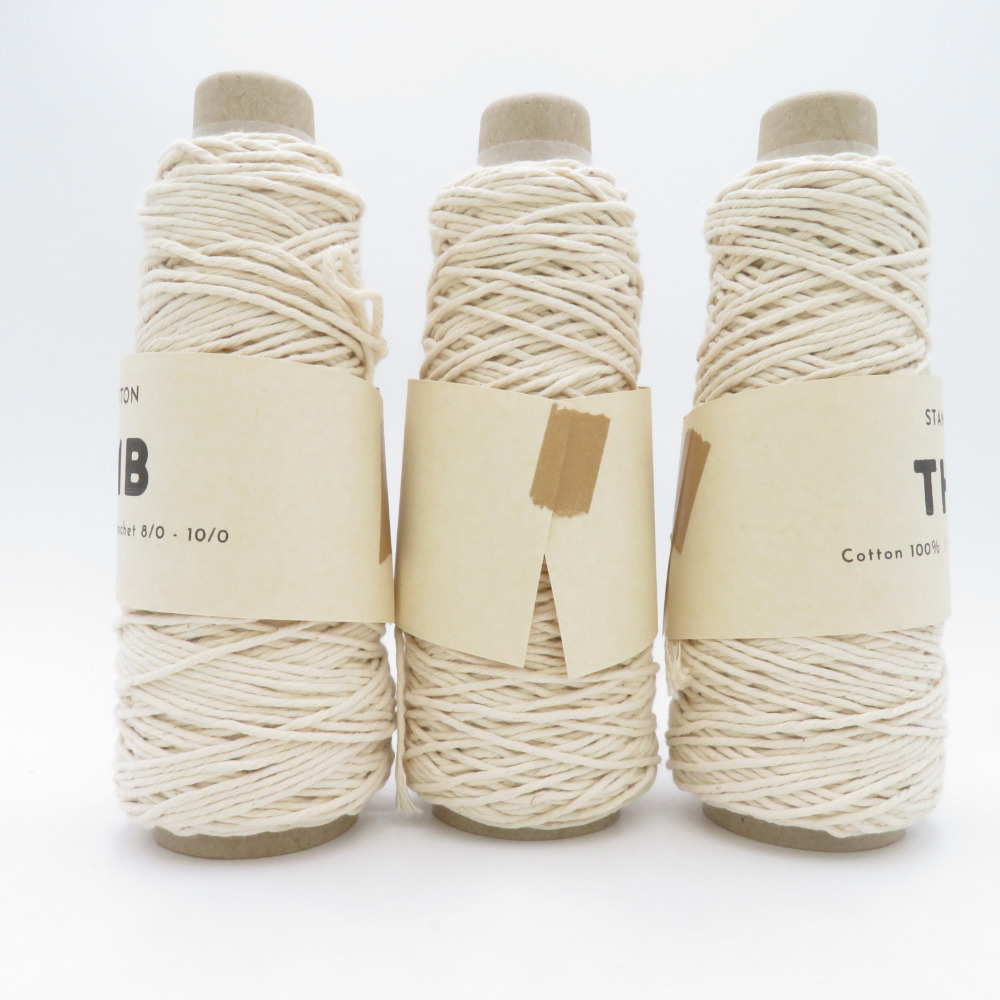 | 商品説明 | [hus:]オリジナルのコットン糸シリーズ「STANDARD COTTON」。 サムはナチュラルな雰囲気のシンプルな太めのコットン糸です。 しっかりとした極太の糸ですが、編むことで柔らかく厚みのある編み地になります。 夏らしいマットやタペストリーなどインテリア小物におススメ! 内容:100g(約92m) 素材:コットン100% 対応号数:かぎ針8/0号~10/0号 | ||