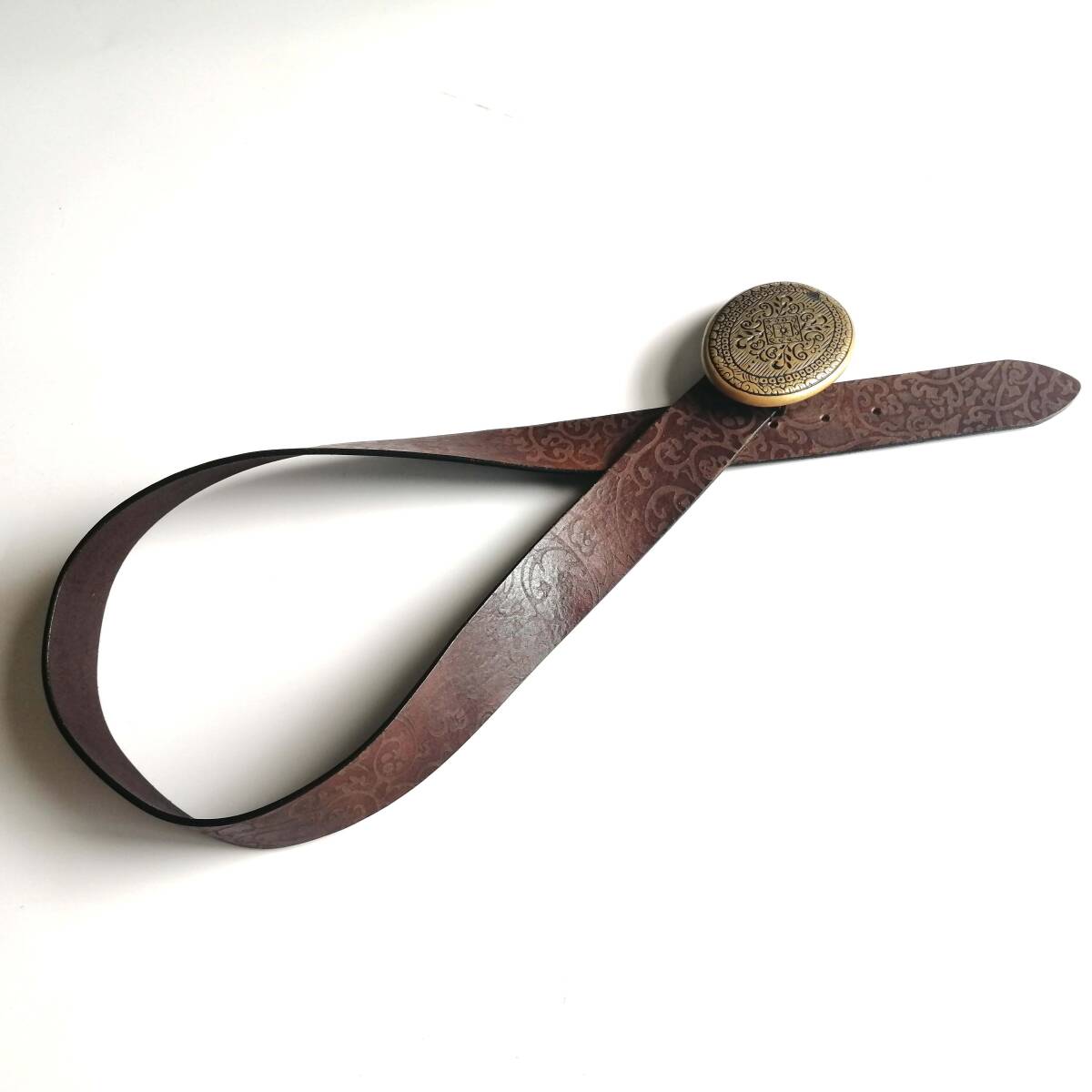 | 【コンディション】 多少の使用感ございますが まだまだ使用できます♪ ◎中古品の為、神経質な方はご遠慮下さい。 ◎検品はしておりますが、見落としがある場合がございますのでご了承下さい。 ◎ディスプレイに使用した、バッグ、靴は非売品です。 【表記サイズ】 サイズ:記載なし M~L 【実寸サイズ】 全長:100㎝ 幅:3.8㎝ 【素材】(%) レザー |