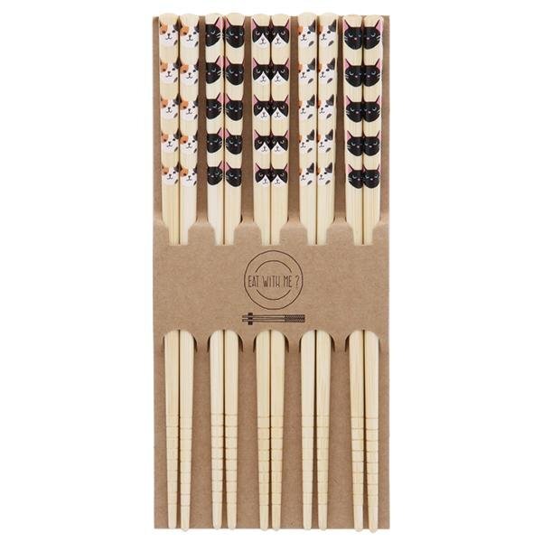 箸 ねこ 5膳セット おしゃれ 20.5cm 大人 子供 来客 家族 5人分 持ちやすい 天然木 景品 日用品 送料無料 1M◇ 箸5本セット:猫