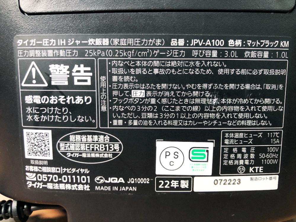 ★引き取りの大歓迎!! ご本人様が直接引取の場合、2,000円値引きます!! 是非お越しください♪ ★お取り置きOK!★ 3ヶ月間までは、無料でお取り置きできます! もしそれ以上の期間をご希望の方は、事前にご相談ください♪ 全国送料無料★2022年製★極上美品 中古★TIGER 5.5合「炊きたて」進化したおいしさ&粒立ち保温!圧力IHジャー炊飯器【JPV-A100-KM】FIQ3 ※写真に写っているものが全てとなります。 ◆一通りの動作確認を行っており、特に問題なく稼働しております。 ◆他にも出品しており、ご覧いただければわかりますが、細かすぎるかもしれませんが、私が気が付いたキズ等に関して、できる限りアップ写真を掲載しております。こちらの商品に関しては、私が見る限りで申し訳ございませんが、やや使用感があるくらいで、その他は全体的にはとても綺麗で、極上美品だと思います。 ※但し、中古品の為、私の気づかないキズ・汚れ等あるかもしれませんので、気になる方はご遠慮ください。 是非、ご検討をお願いします。 【商品説明】 忙しい共働き世帯に送る。毎日手間なくおいしい炊飯器。 ■遠赤5層土鍋蓄熱コート釜でごはんふっくら 金属釜最上位機種で採用している蓄熱性を高める素材を釜に採用。粒子の大きさの異なる素材を重ねることで蓄熱性アップし、ごはんの甘みを引き出します。金属を重ねた5層構造により、効率よく内なべが発熱。炊きムラの少ないごはんができあがります。 ■旨み粒立ち炊飯プログラム搭載 土鍋の温度コントロールも参考に、土鍋で作り上げている弾力あるごはんを目指す。?吸水は低めの温度で長く吸水⇒米がだれることなく、弾力を保つ。?昇温は急速に温度上昇⇒一気に昇温させ、弾力を引き出す。 ■冷凍ごはんコース搭載 「残ったごはんを冷凍したい」「まとめて炊いて冷凍したい」というニーズに応え、冷凍用のごはんをおいしく炊いていただけるプログラムを採用。「白米」よりしっかり吸水させることで、乾燥を防ぎほどよいかたさでべちゃつきを抑えたごはんを実現しました。 ■少量高速メニュー 土鍋コート釜の内なべならではの遠赤効果や蓄熱性、多層釜の熱伝導性の良さにより、吸水・昇温・蒸らしの各工程でお米にしっかり効率よく熱を伝えて、少量高速炊飯を実現。 ■調理メニュー 調理メニューにも簡単に調理できるクイック調理から、こだわりのスロー調理や無水調理まで豊富なメニューレシピで便利な「クッカー」としてご利用いただだけます。 ■部品点数はたったの2点で、お手入れらくらく (1)内なべ (2)内ふた(着脱式) 取り外しも簡単で毎回のお手入れを楽にしていただけます。 メーカー:タイガー魔法瓶 製造年:2022年 炊飯容量:5.5合 炊飯方式:圧力IH 内釜仕様:遠赤5層土鍋蓄熱コート釜 本体サイズ(高さ×幅×奥行):214mm×257mm×380mm ふた開き時の高さ:423mm 本体重量:5.5kg 詳しくはこちら↓ https://www.tiger-corporation.com/ja/jpn/product/rice-cooker/jpv-a/ ◆動作保証しておりますので、商品到着後3日以内に落札後の商品お取引画面から、動作不良等の内容をメッセージ連絡頂きましたら、初期不良対応は致します。但し、電源が入らない、全く稼働しない致命的な不具合に限ります。 ◆簡易清掃を行っております。 当方としては、清掃を行っておりますが、あえて簡易清掃と言わさせていただきます。 神経質な方や、新品同等のレベルをお求めの方、気になる方はご遠慮ください。 ◆その他、素人なりに慎重に確認したつもりですが、中古品の為、私の気づかない傷や汚れ等あるかもしれません。 専門的・神経質な細かな点までの対応はできませんので、基本的にノークレーム・ノーリターンでお願いします。 ※下記内容を最後まで、必ずお読み下さい。 ご入札・落札の際は、ご了承頂いたものとみなします。 注意事項★☆★☆★☆★☆★☆★☆★☆★☆★☆★☆★☆★☆★☆★☆ ●ヤフオクシステム改定に伴い、「 受取連絡 」が非常に重要となりますので、商品到着後24時間以内に受取連絡された方のみ、初期不良対応・保証対象とさせていただきます。 ●私としてで申し訳ございませんが、できる限り誠意ある対応を心がけているつもりですが、顔の見れないお取引が故に色々な方がおり、また人それぞれ感性など異なりますので、ところどころ、あえてと記載させて頂いております。 ●初期不良対応・保証に関して、お届け先へ商品到着後、3日以内が保証対象となります。 ●商品が届いたご住所で動作確認等行ってください。移動しますと保証対象外になります。 ●万が一、商品に不具合等がございましたら、落札商品お取引画面から具体的な不具合等の内容をメッセージして下さい。商品到着後、3日以内メッセージを頂けていない場合は、保証対象外となりますので、必ずお願いいたします。 ●家電に関しては、あえて、電源が入らない・全く稼働しないなどの致命的な不具合、家具類など電気を使わないものは、その物として成り立たない物に限らさせてい