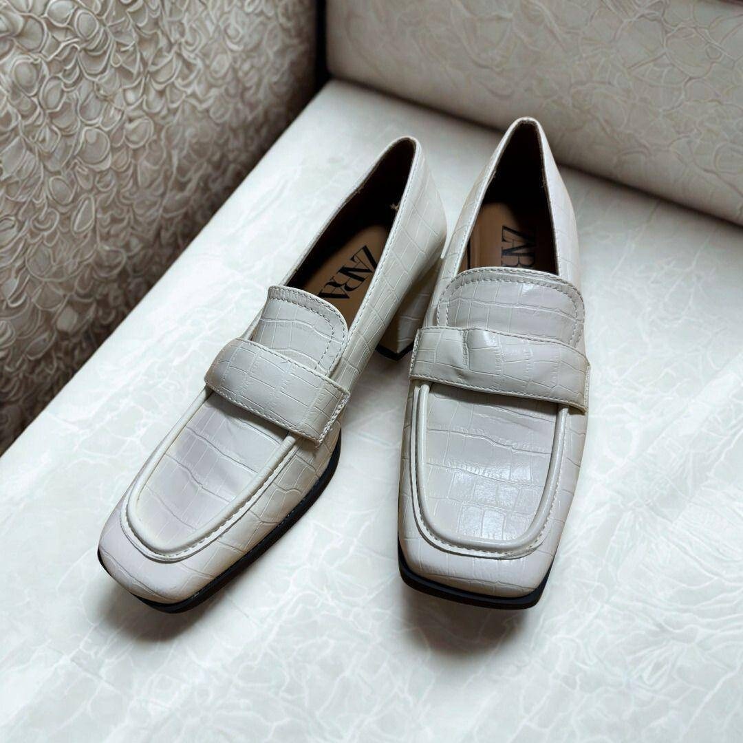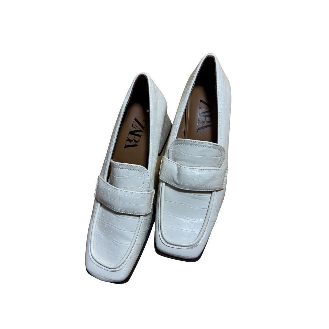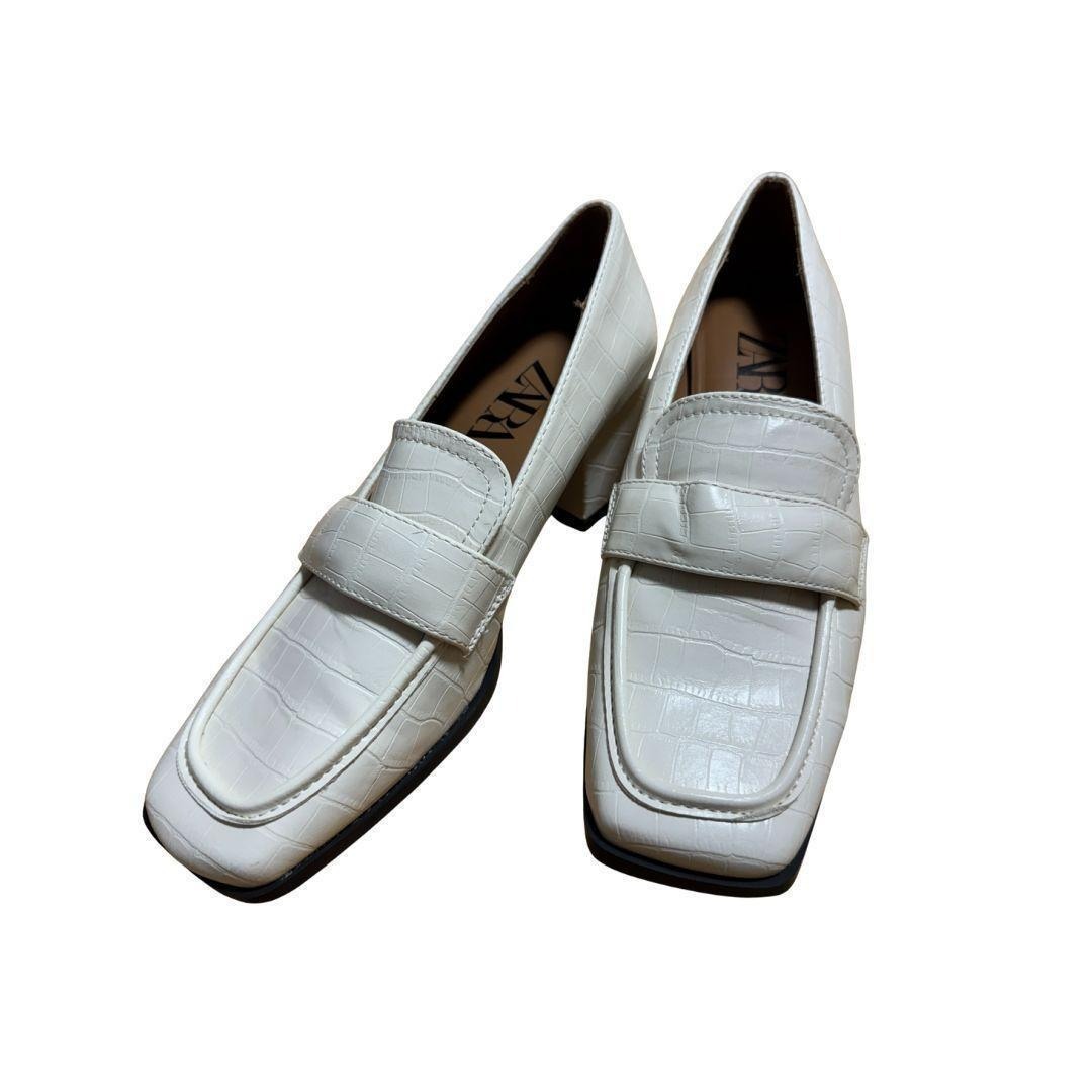 ZARA(ザラ)のクロコ調型押しヒールローファーです。