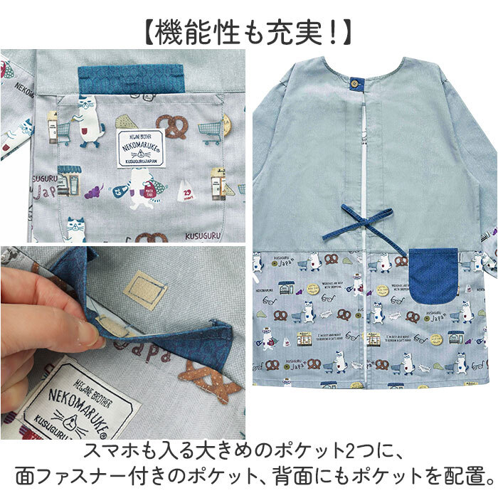 | 商品説明 | ・・【パッと目を惹くネコちゃんたち♪】 ・見るたびに癒される、可愛いネコちゃんがたまらない!毎日使いたくなるアイテム◎ ・【可愛いアップリケが魅力】 ・ネコまるけ達のアップリケや刺しゅうでキッチンタイムも気分が上がる♪ ・【機能性も充実!】 ・スマホも入る大きめのポケット2つに、面ファスナー付きのポケット、背面にもポケットを配置。 ・【袖口にはアクセント!】 ・袖口部分の柄切り替えでさりげないおしゃれ感。 ・【お洋服をしっかりカバー】 ・家事やお仕事の汚れからしっかりガード。おしゃれさと機能性を両立。 ・【KUSUGURU JAPANとは☆】 ・やたら猫ばっかりをコンセプトに布雑貨を作成。オリジナルキャラの「ネコまるけ」が人気! |