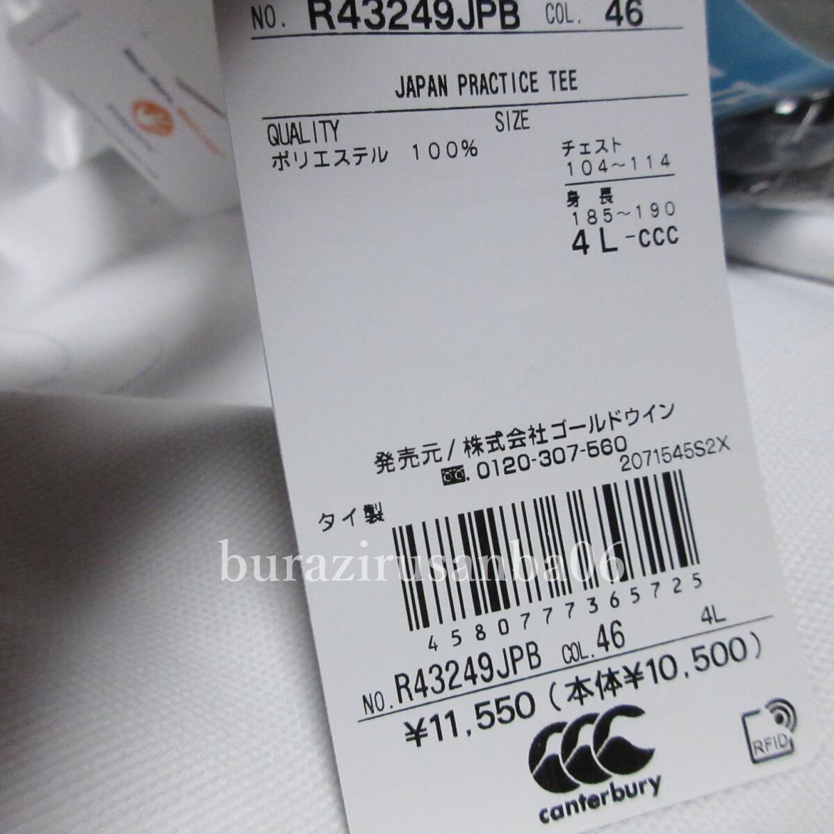 カンタベリー ラグビー日本代表モデル ジャパン ロングスリーブ プラクティス Tシャツです。 高温多湿期の練習や ファーストレイヤーに求められる遮熱効果、 ベタつき軽減を兼ね備えた高機能素材 D.A.F TEC DRY(ダフテックドライ)を使用。 ダフテックドライの特徴は、 遠赤外線反射セラミックスで 太陽光線に含まれる赤外線を反射し 紫外線をカットする特殊ファイバー SHADAN(シャダン)を使用、 衣服内の温度上昇を抑制します。 また、肌面サイドに撥水糸を使用する事で 汗によるベタつきを軽減させ コンフォート性を向上させます。 更に、ポリジン加工(抗菌防臭加工)を施すことで、 合宿などの練習で長時間着用しても、 汗のニオイを元から防ぐことが可能です。 ポリジンはニオイのもとである バクテリアのみに作用するので、 肌にも優しく安全です。 薄手の速乾素材。 日本の象徴 桜エンブレム、 スポンサー入りのレアな逸品です。 ◇(株)ゴールドウイン正規品 ◇状態:未使用 タグあり 外装なし ◇定価: ¥11,550円 税込 ◇素材:ポリエステル100% ◇カラー:(46)ライトオリーブ ややオリーブがかった濃いグレーの印象です ★サイズ表記 メンズ 4L (タグ表記) チェスト104~114cm 身長185~190cm 実寸 身幅 58cm 着丈 77cm(背面) 裄丈 88cm ※多少の誤差はご了承ください ※商品の実寸には個体差による若干の誤差がございます ★ご新規 評価一桁の方は入札ご遠慮ください ●モニター環境により実際のお色と異なる場合がございます ●採寸方法は全アイテム「平置き」です。 採寸方法により、若干の誤差(伸縮による1~2センチの誤差)は あると思われますがご了承下さい。 *2449257157824 | |||