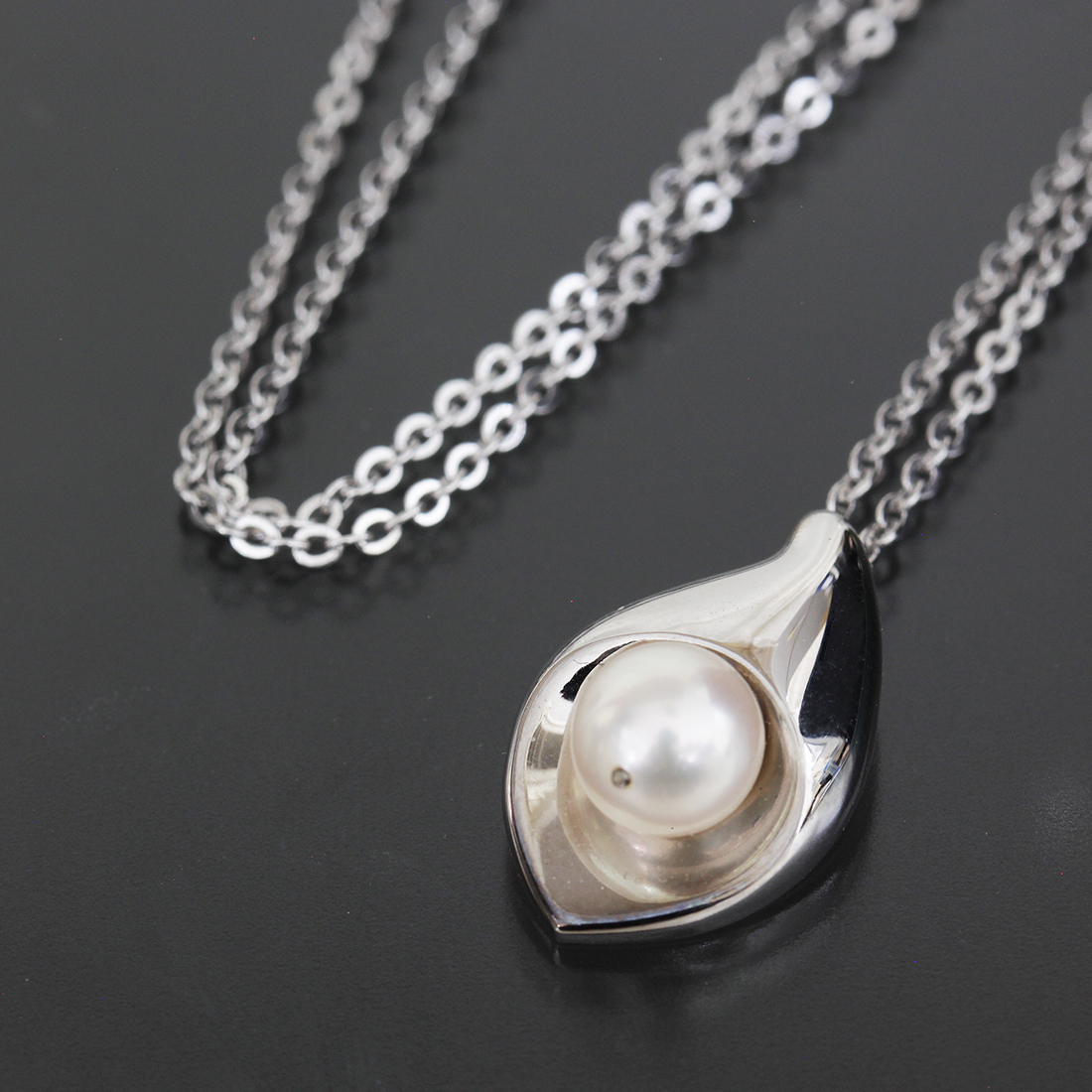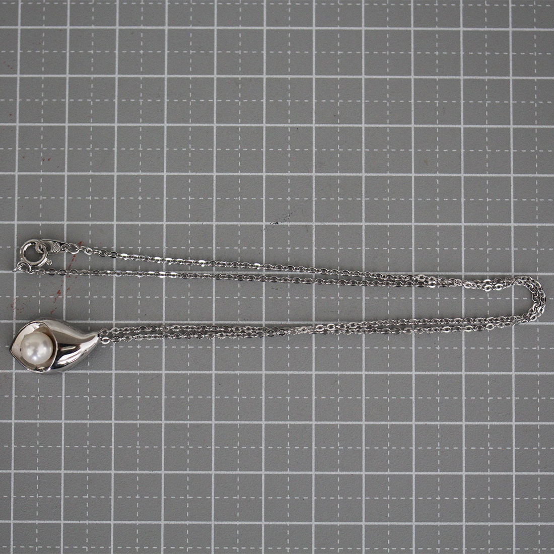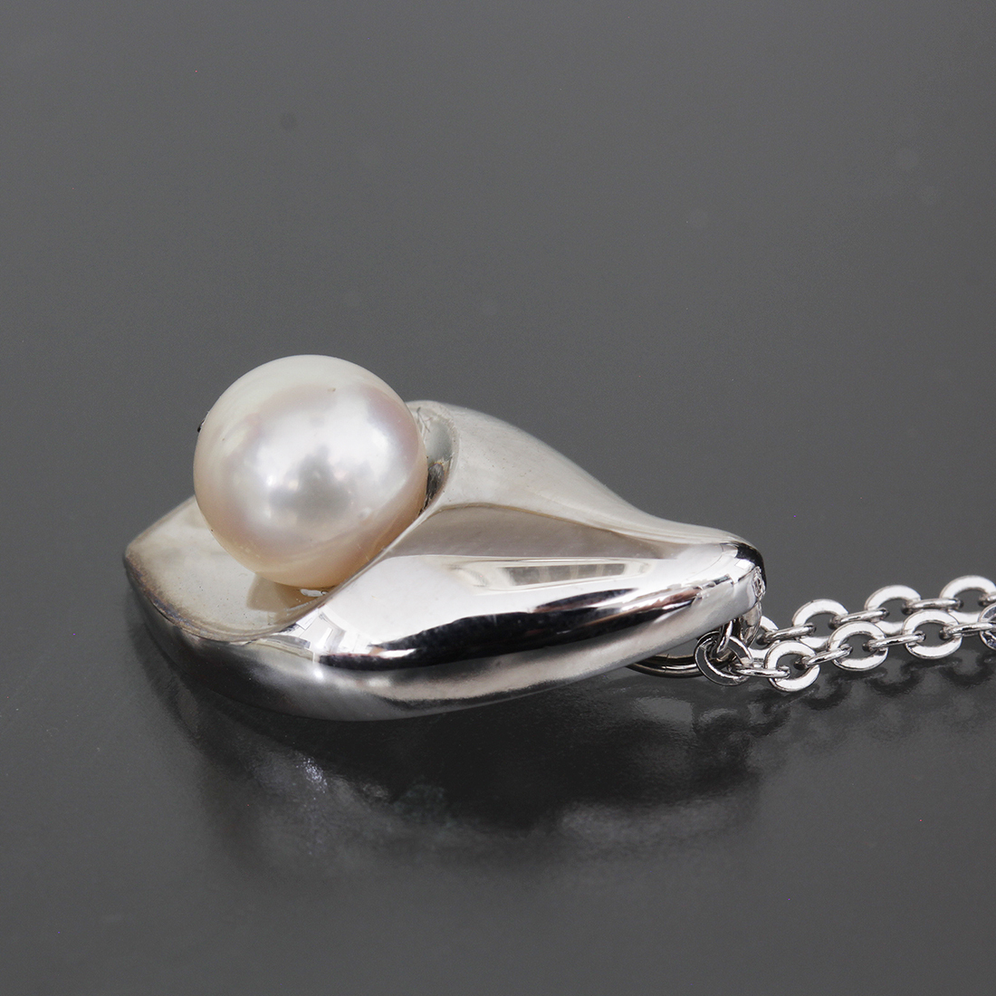 ■ タサキの高品質なパールをトップ部分に配置したネックレスです。スタイリッシュなシルバーにパールが輝き、胸元に彩りを与えます。ぜひご検討下さい。