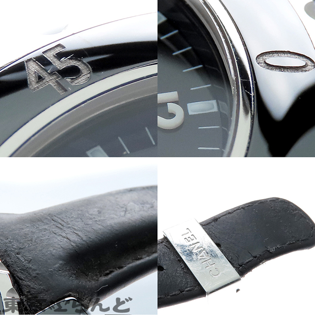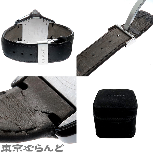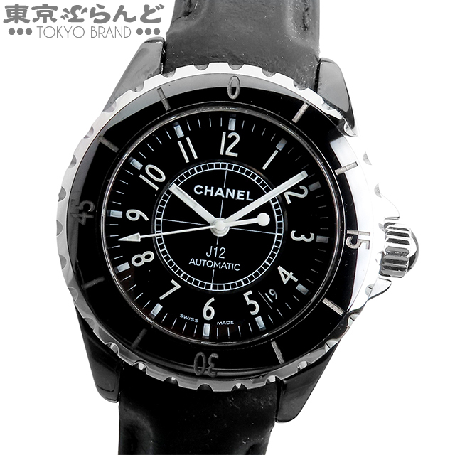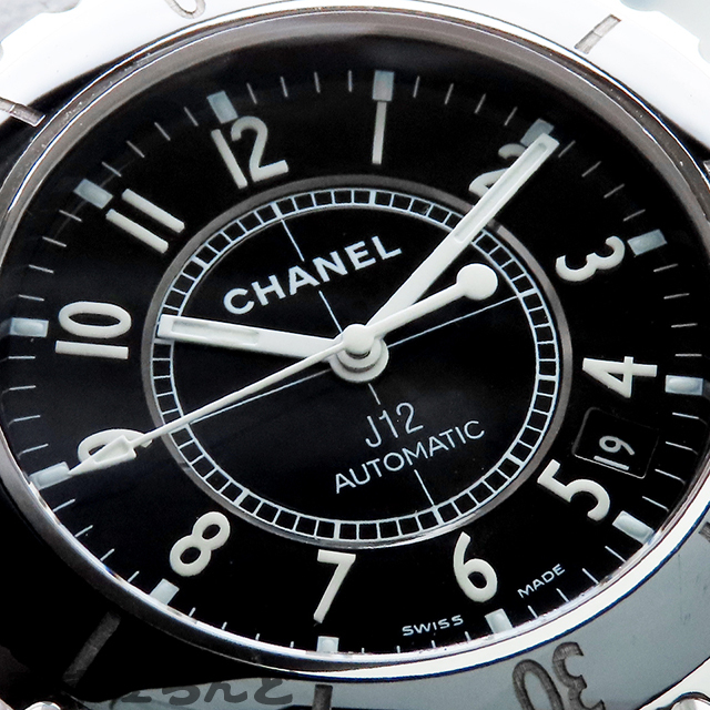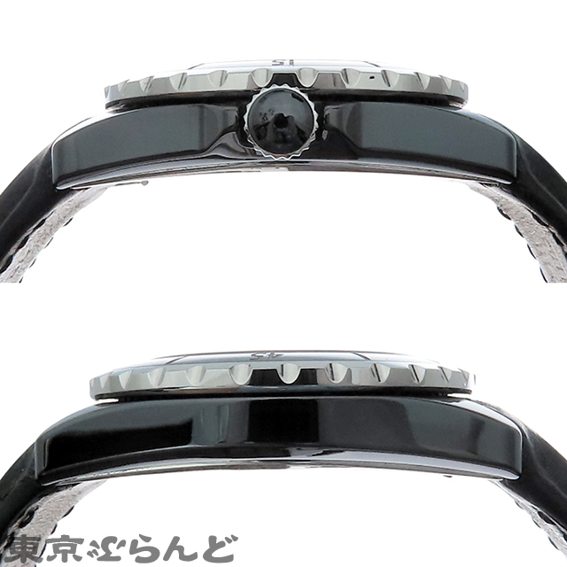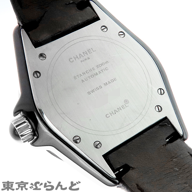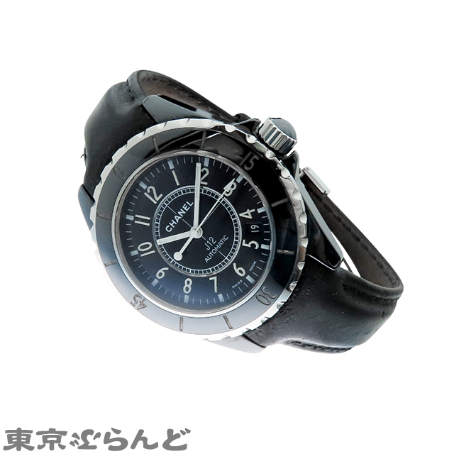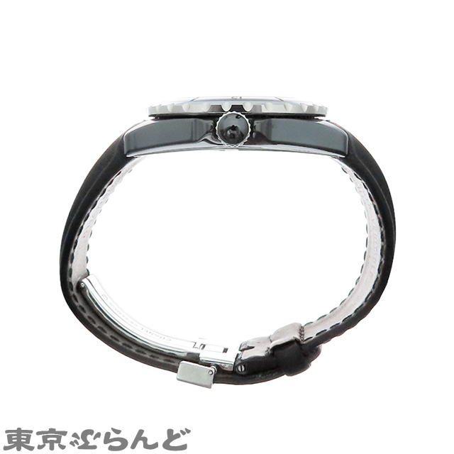 101817747 1円 シャネル CHANEL J12 H0683 ブラック セラミック レザー SS ラウンド デイト 腕時計 メンズ 自動巻