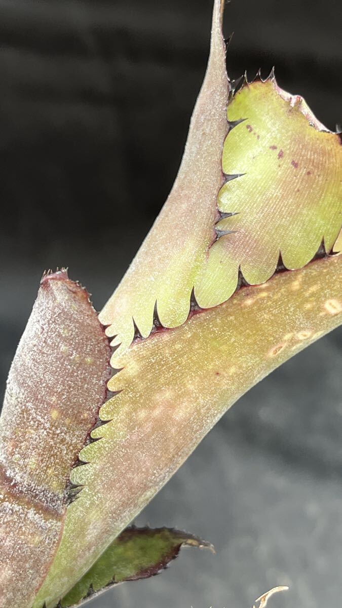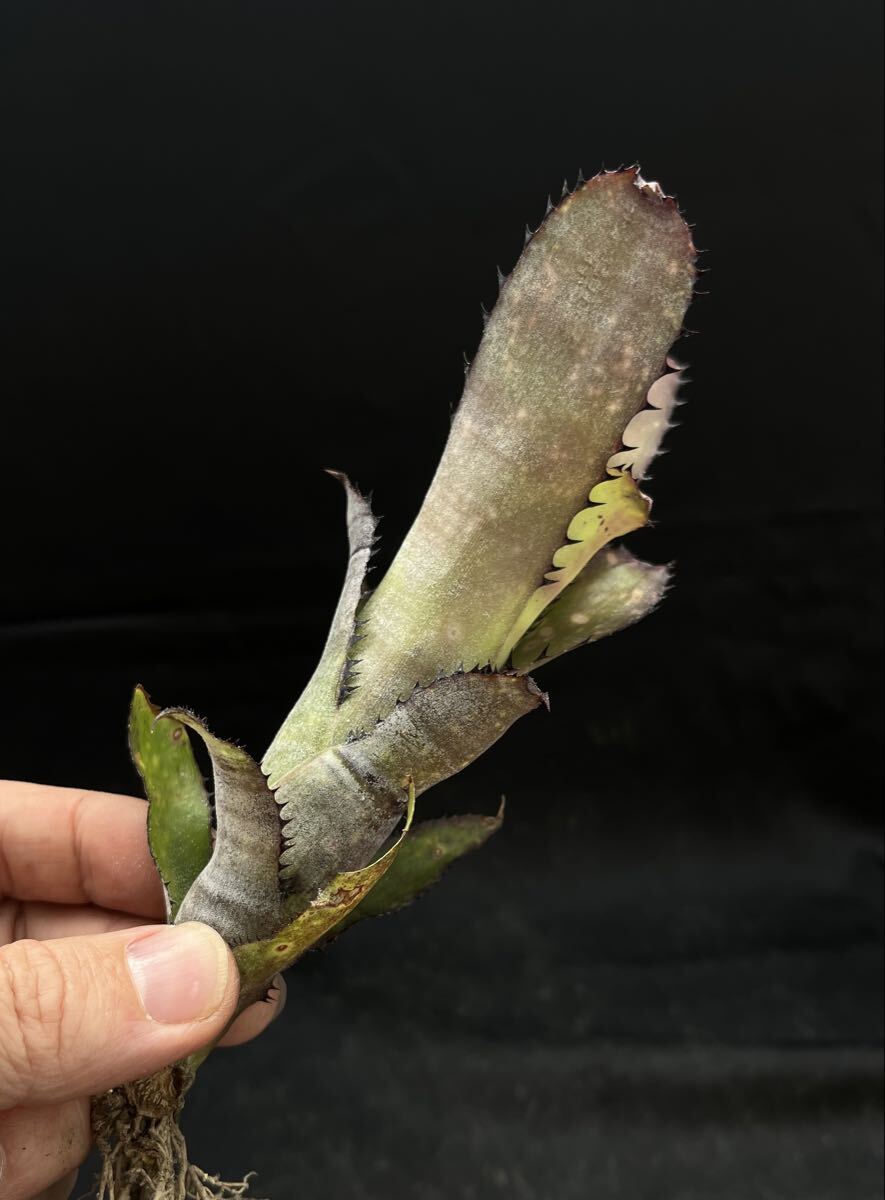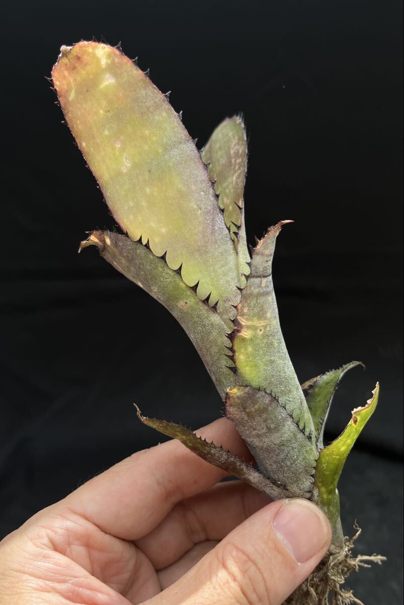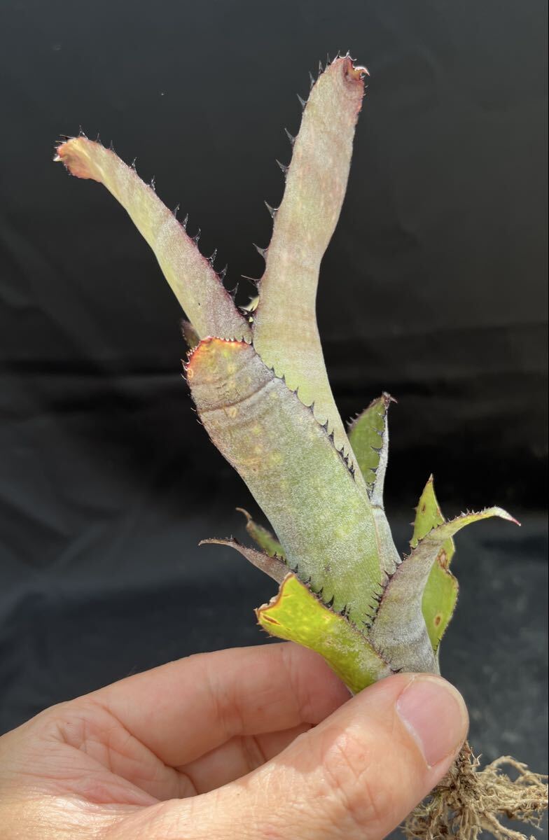 アメリカから コレクションからリリースさせて頂きます。 この株はMichael’s Bromeliadsからの株になります。 葉色は緑から赤茶系で比較的地味ですが、デカ目の黒棘が目を引く個性的な株です。 限度はありますが、強光線下でより美しい表現をします。 現在肥培管理で伸び伸びなので、かなり崩れていますが、まだ子株なので十分リカバリーできるサイズかと思われます。 翌日の発送になります。発送の準備があるので落札後その日中に振込みが出来ない方は入札をご遠慮下さい。 |