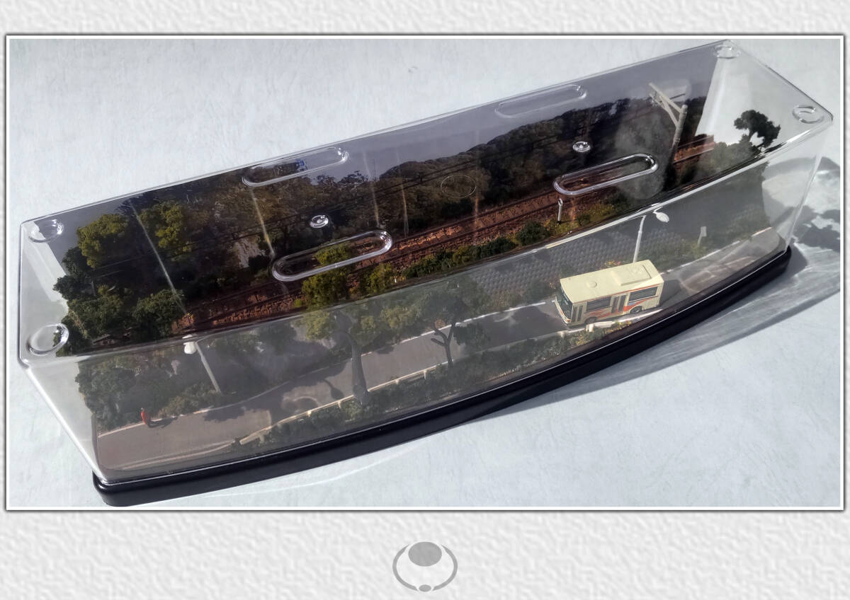 ケースのサイズは約351010 (ワイド型)。画像にある車両(電車か、新幹線か、機関車か)は付属いたしません。お好きな車両を置くことができます。背景画像は付属いたします。架線は単線架線柱と木の2箇所で接着されています。架線柱や街灯、木などが倒れないようにご注意ください。非常によく接着された作品ですが、多くの細かいパーツがあるため、慎重にお取り扱い下さい。梱包の仕方は商品に合わせてダンボールをカットし隙間のない状態で箱を作って緩衝材等を使ってできるだけ注意深く行い、注意ラベルを貼って発送します。他にも展示台出品しております、まとめて取引可能ですのでぜひご覧ください。