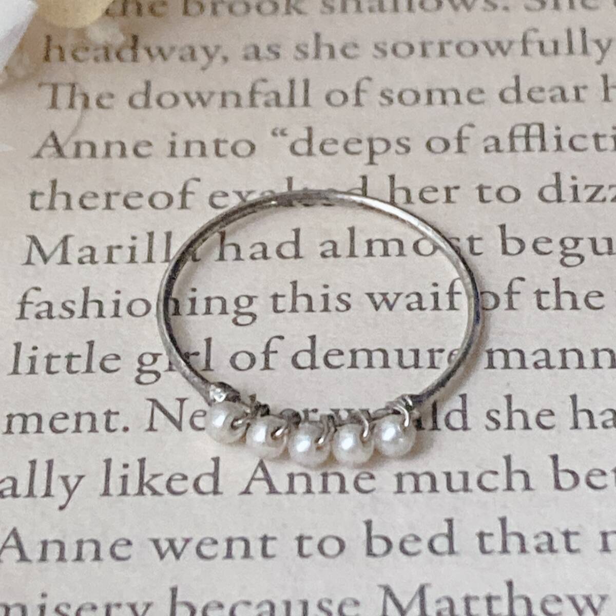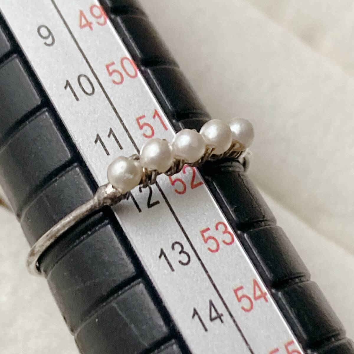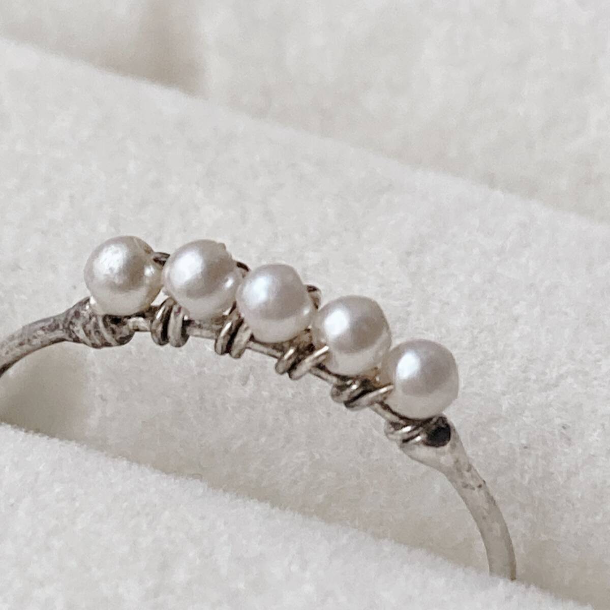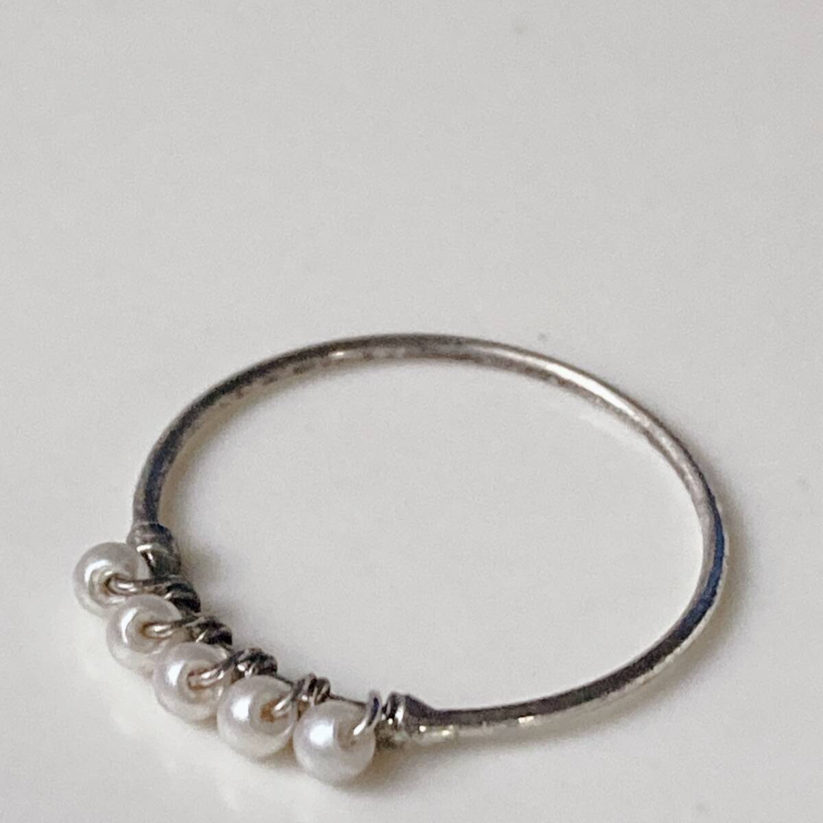リング ベビーパールリング シルバートーン 細目 12号 美品☆vintage jewelry accessories F0177
