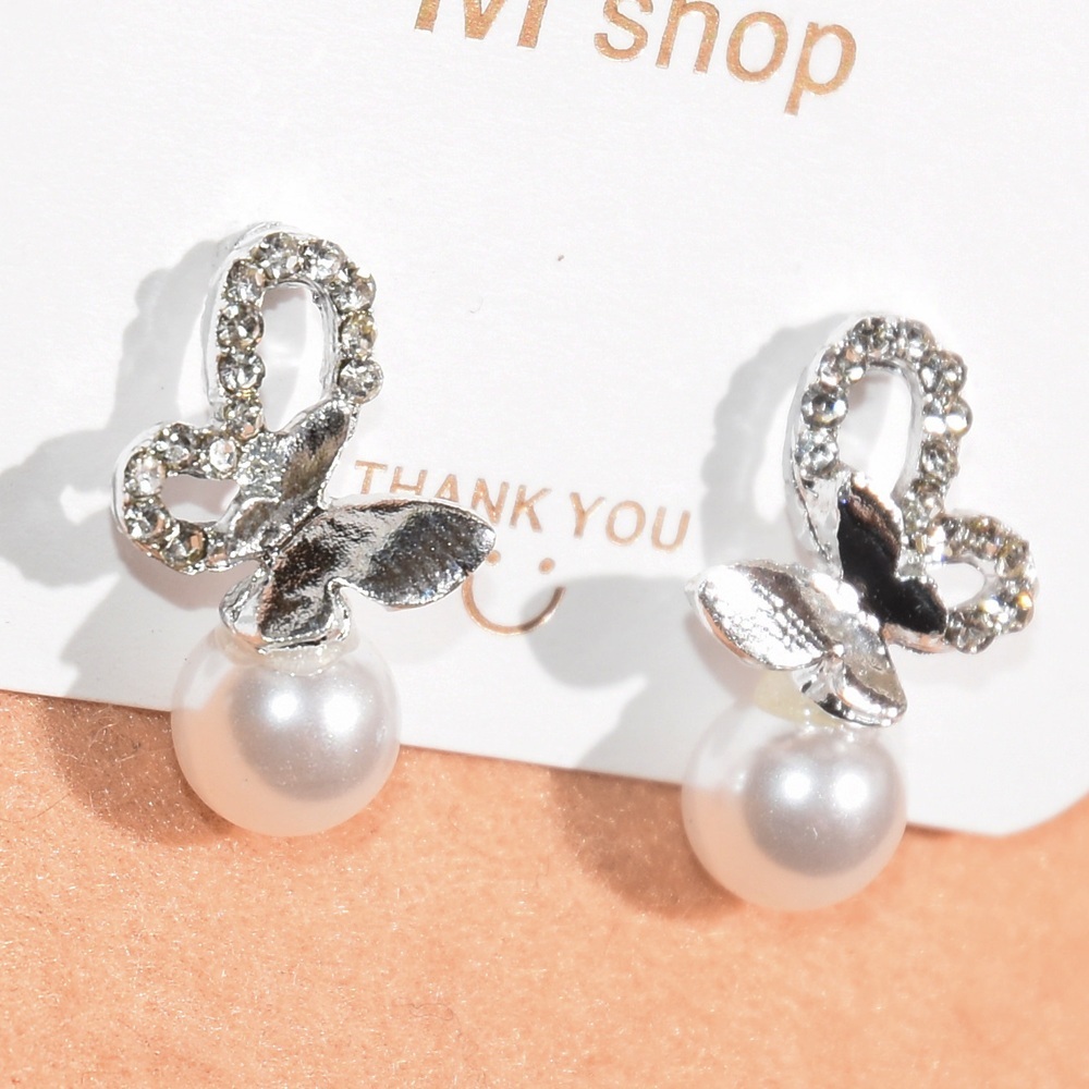 ★パールビーズピアス★蝶★スタッドピアス★新品★C55