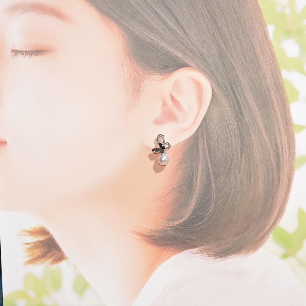 パールビーズとクリアストーンでデザインされた、かわいいスタッドピアスです♪
