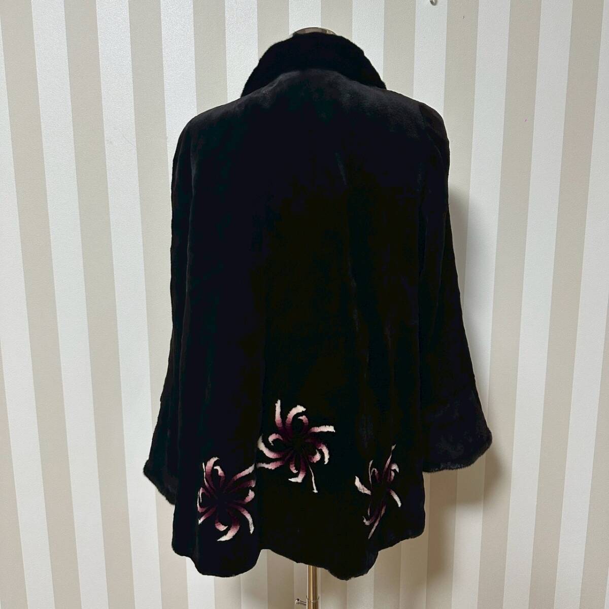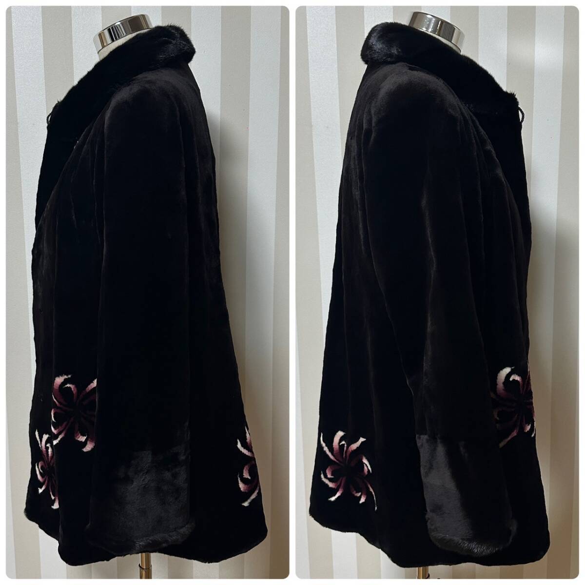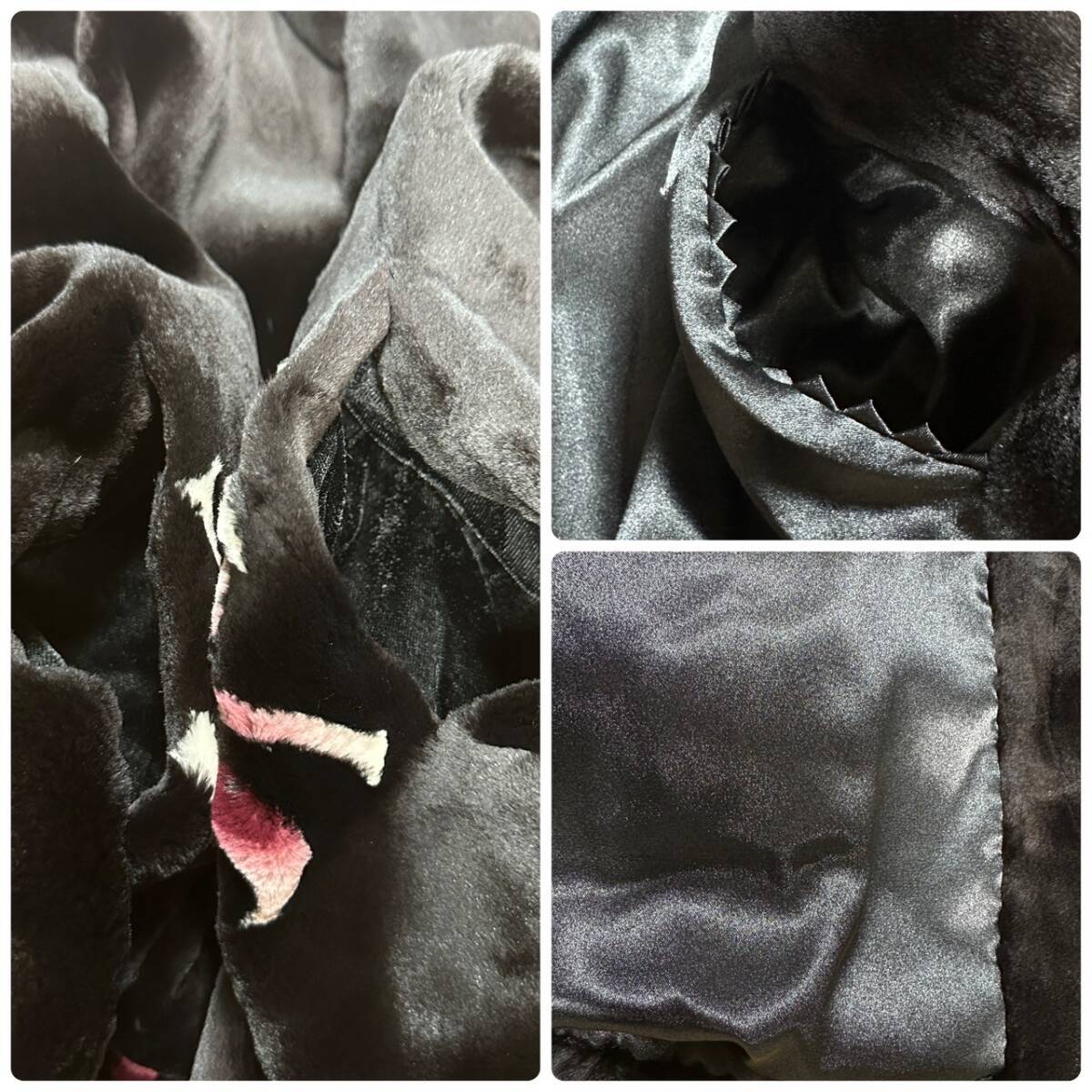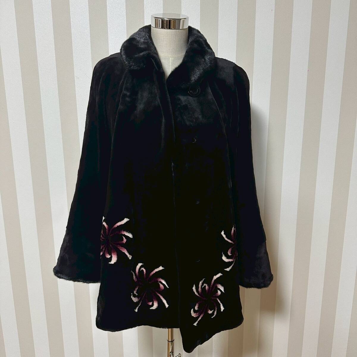 商品:★1円〜【レディース毛皮】 SAGA MINK ROYAL サガミンク ロイヤル 金サガ シェアード 毛皮  コート 花柄 ブラック 着丈約85cm K101162