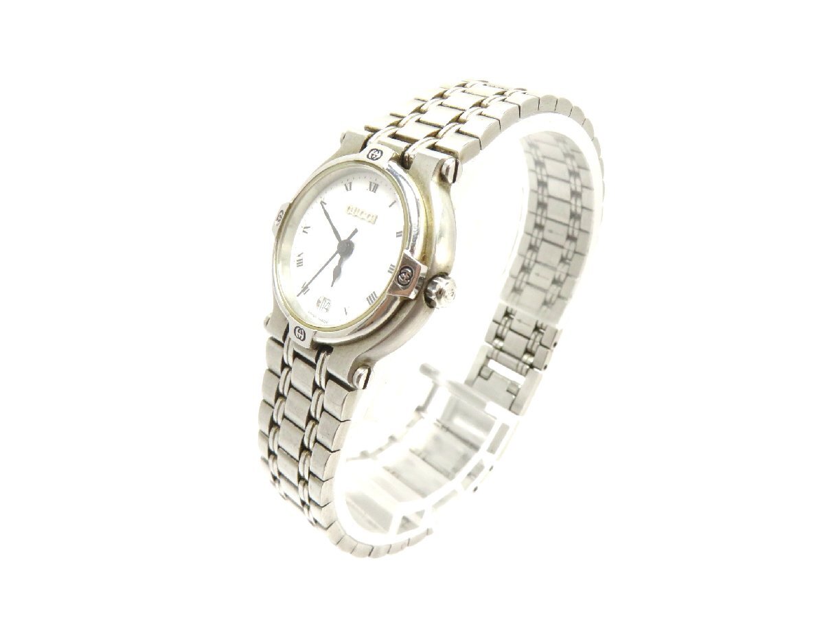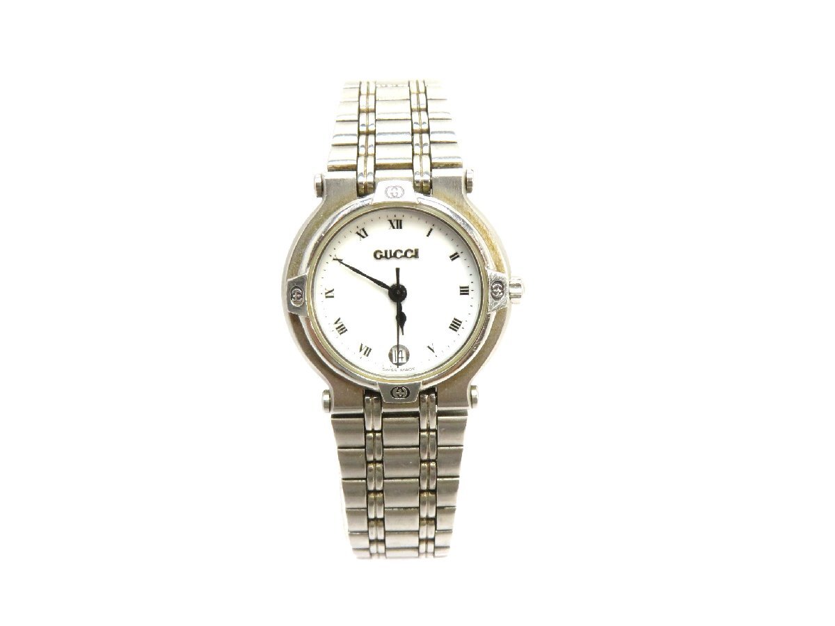 1円開始◆稼働◆ グッチ 9100L ホワイト クオーツ レディース 腕時計 AB81503