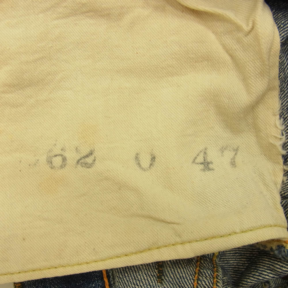 | 特記事項 | ※コインポケットのリベットが一部欠損しております。※パッチが欠品しております。※品質表記、サイズ表記タグがございません。サイズに関しましては実寸サイズをご確認ください。※全体的に非常に目立つ強い使用感(ダメージ、汚れ、キズ。擦れ、毛玉、毛羽立ち、生地アタリ、色褪せ)などございます。こういった中古商材にご理解のある方のみご検討下さい。完璧な商品状態をお求めの方はお控え下さい。 |