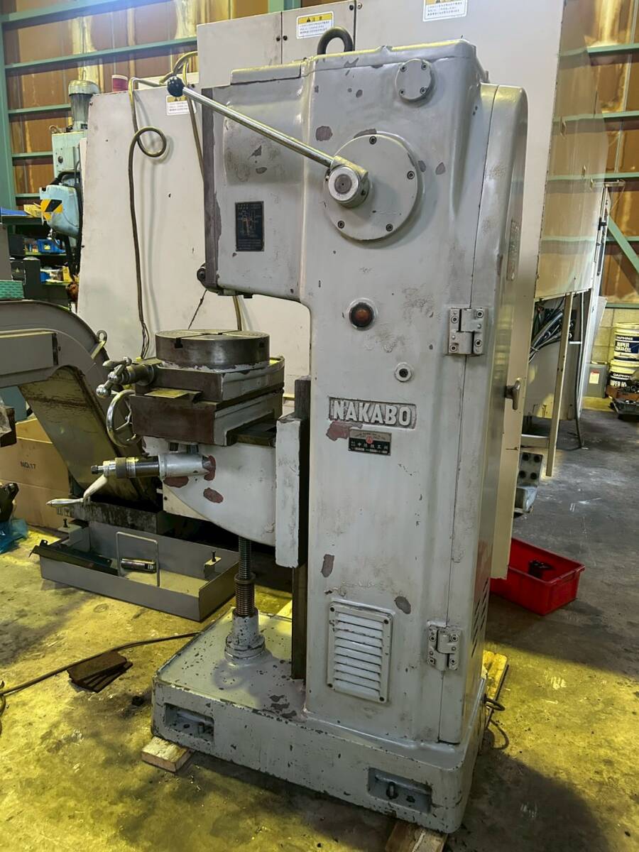 商品説明 | スロッター 立て削り盤 ひざ形 Slotter(中古品・現状有姿) メーカー:中坊鉄工所 型式:NS-Ⅲ 年式:1975年製 全体サイズ(約㎜):巾710×奥1100×高1590 テーブルサイズ:280㎜ 重量:770kg(カタログ表記) ※きず・汚れあり ※付属品は写真にある限りです(画像8参照) ☆下記URLから試運転時の動画が閲覧可能です☆ ↑URLをタップ↑ ※下記にお取引に関する内容を細かく記載しております※最後までご一読いただき、ご落札くださいませ |