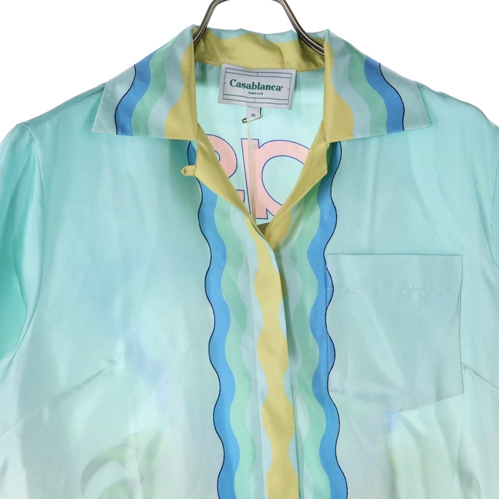 CASABLANCA カサブランカ SILK SATIN CUBAN COLLAR SHORT ロゴ総柄シルク 開襟シャツ 半袖シャツ マルチ レディース