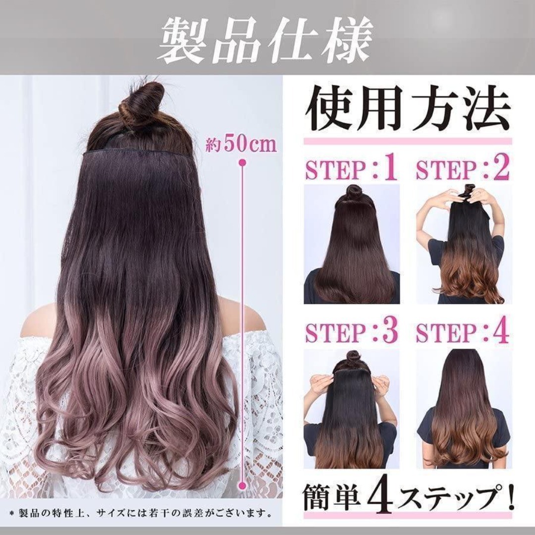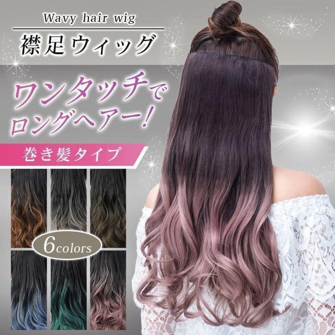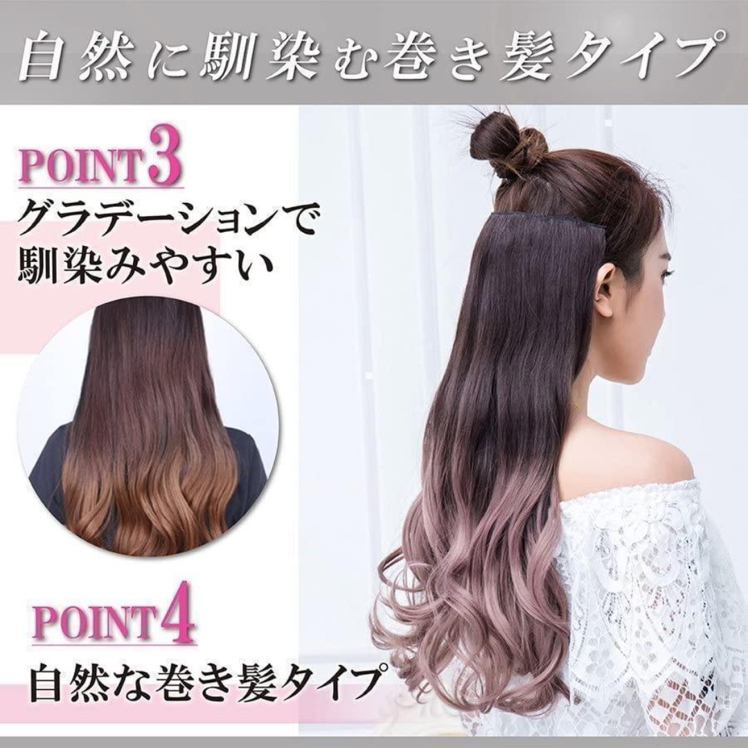 Ansgo エクステ グラデーションカラー 襟足ウィッグ ロング カール ハーフウィッグ レディース (ピンク)