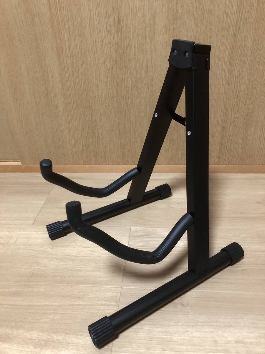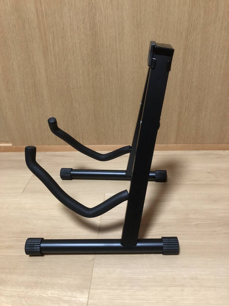 ギタースタンドの出品です。折り畳み式でコンパクト軽量です。